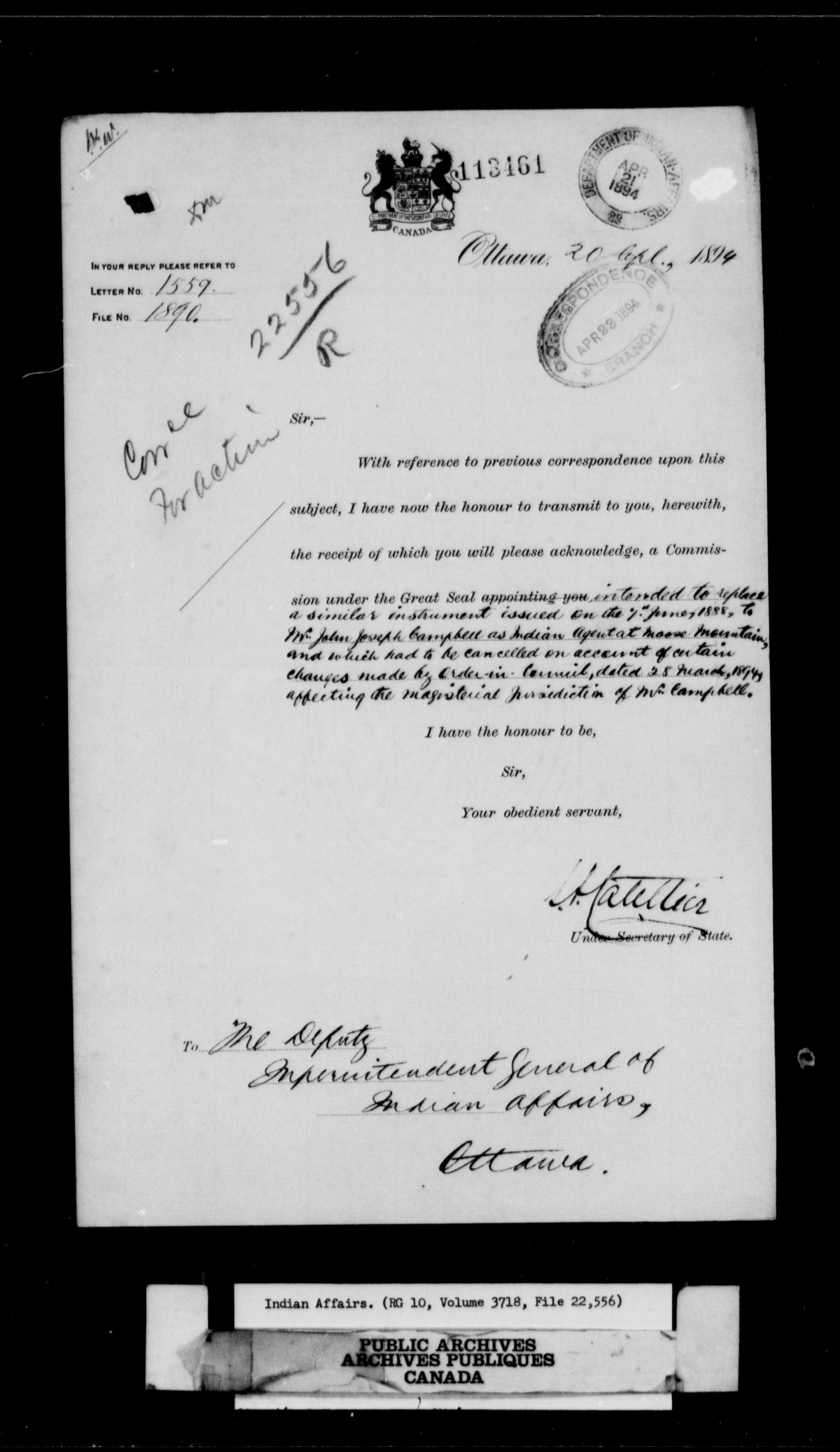 Department of Indian Affairs, Headquarters central registry system : black series - 10126