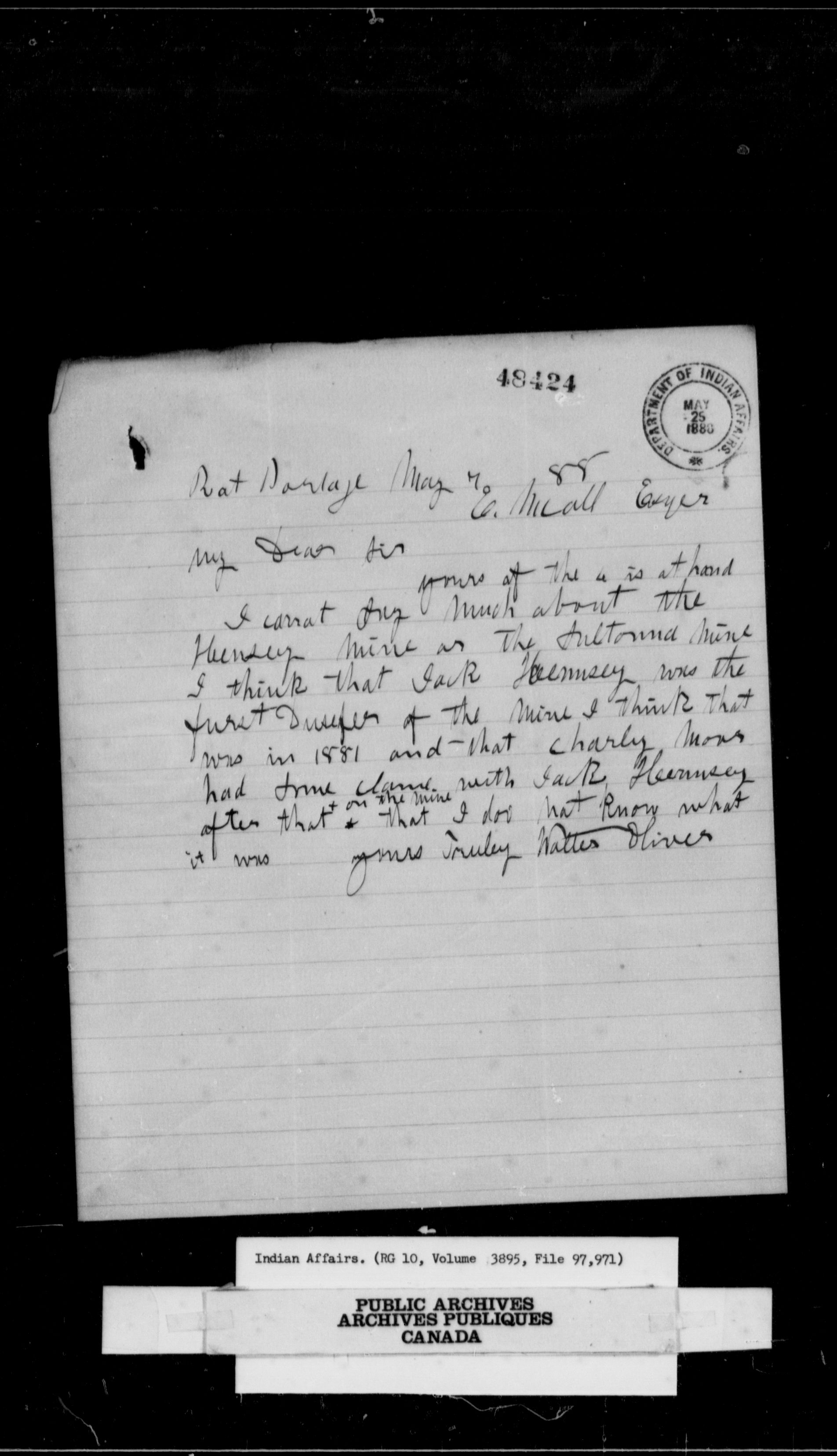RG 10, Indian Affairs, Black Series - 10156
