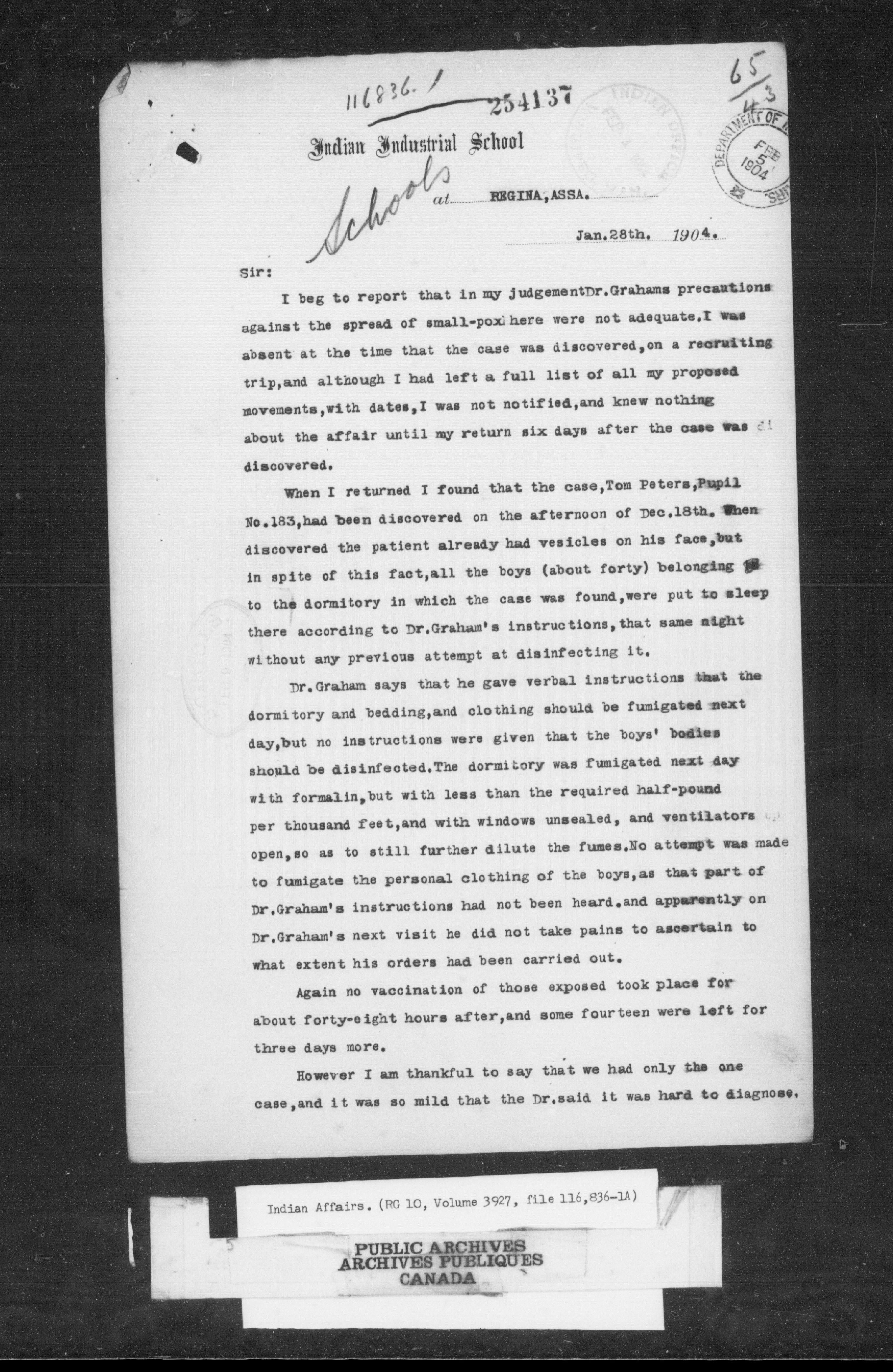 Department of Indian Affairs, Headquarters central registry system : Black series - 10162