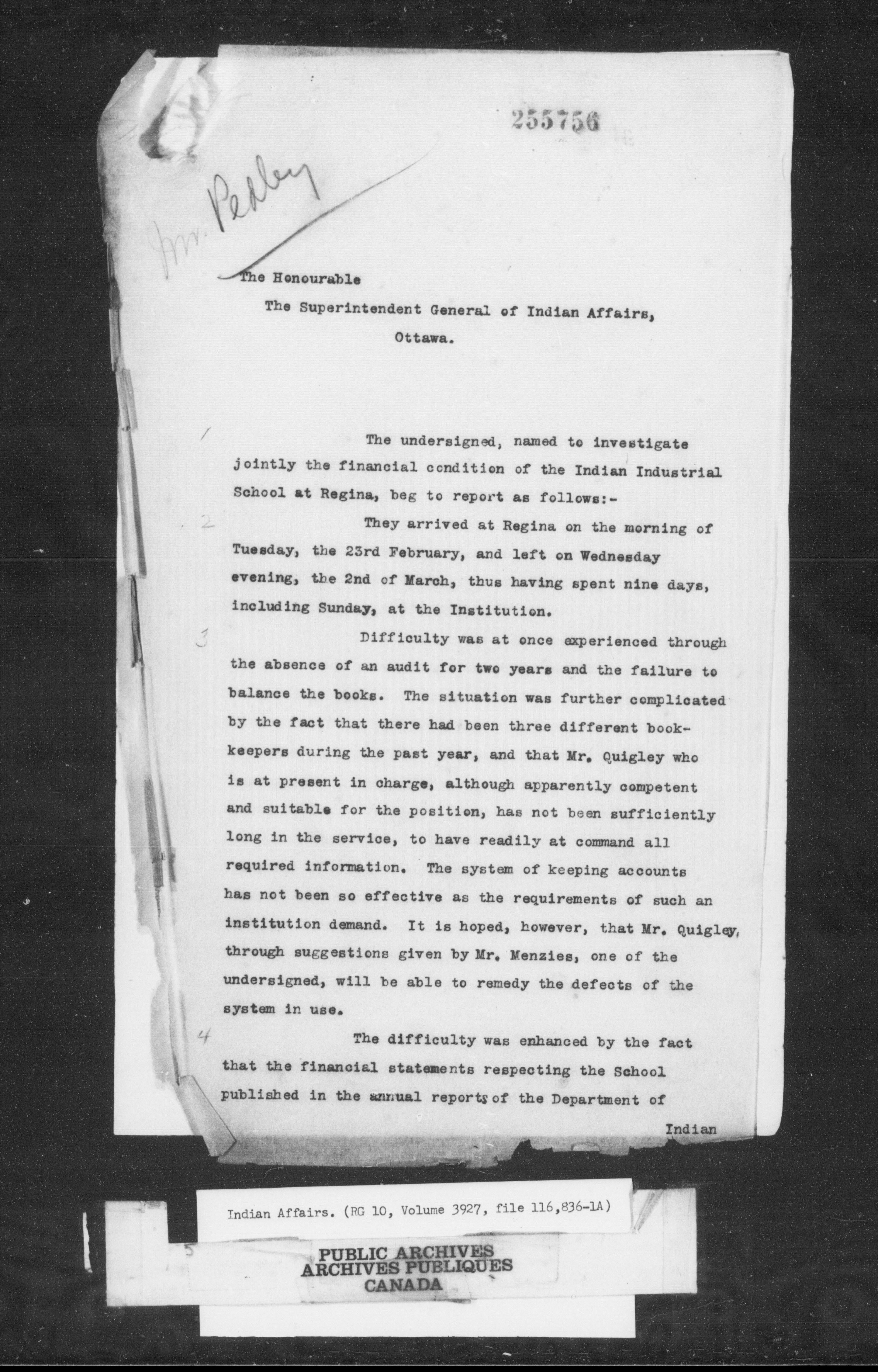 Department of Indian Affairs, Headquarters central registry system : Black series - 10162
