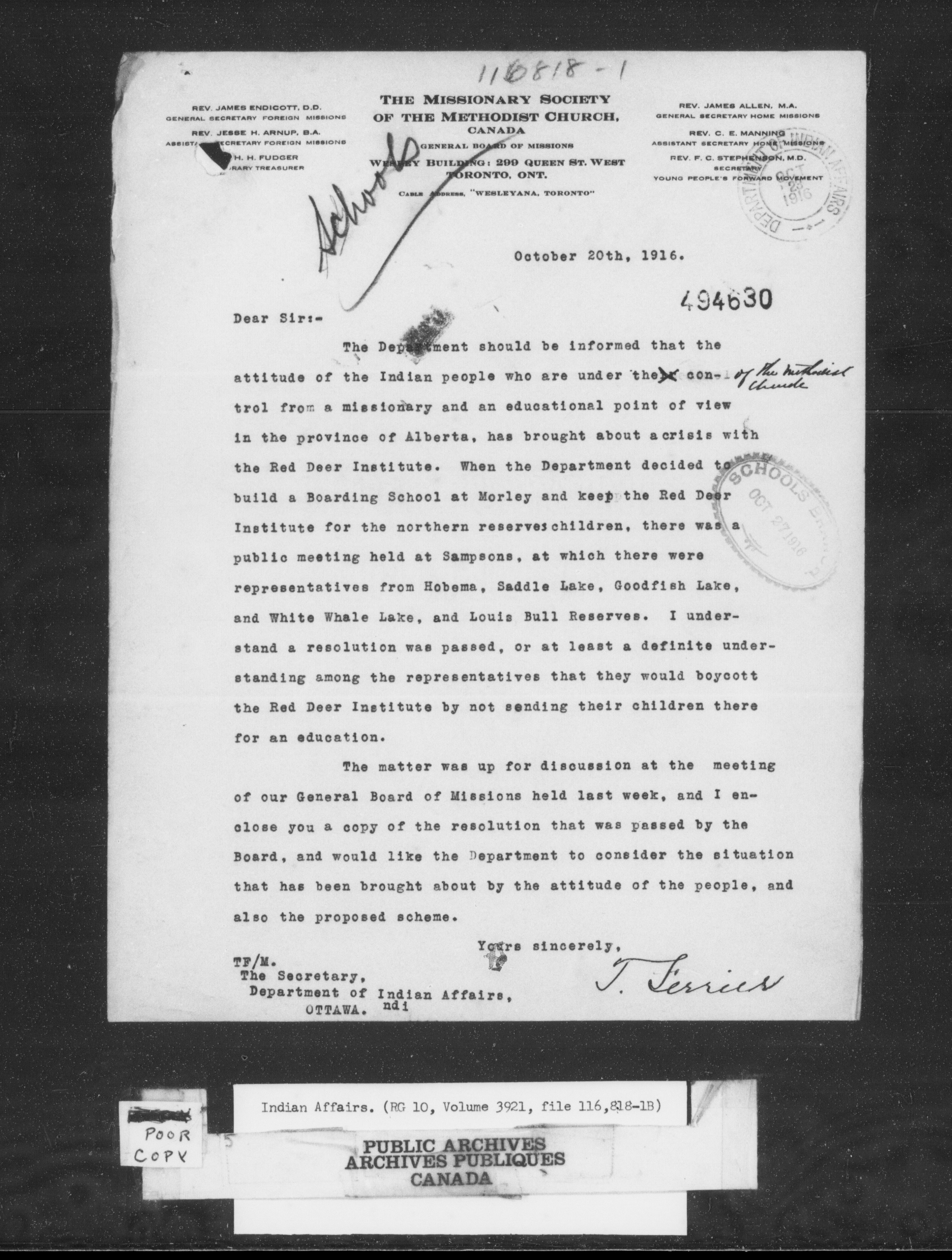 Department of Indian Affairs, Headquarters central registry system : Black series - 10162