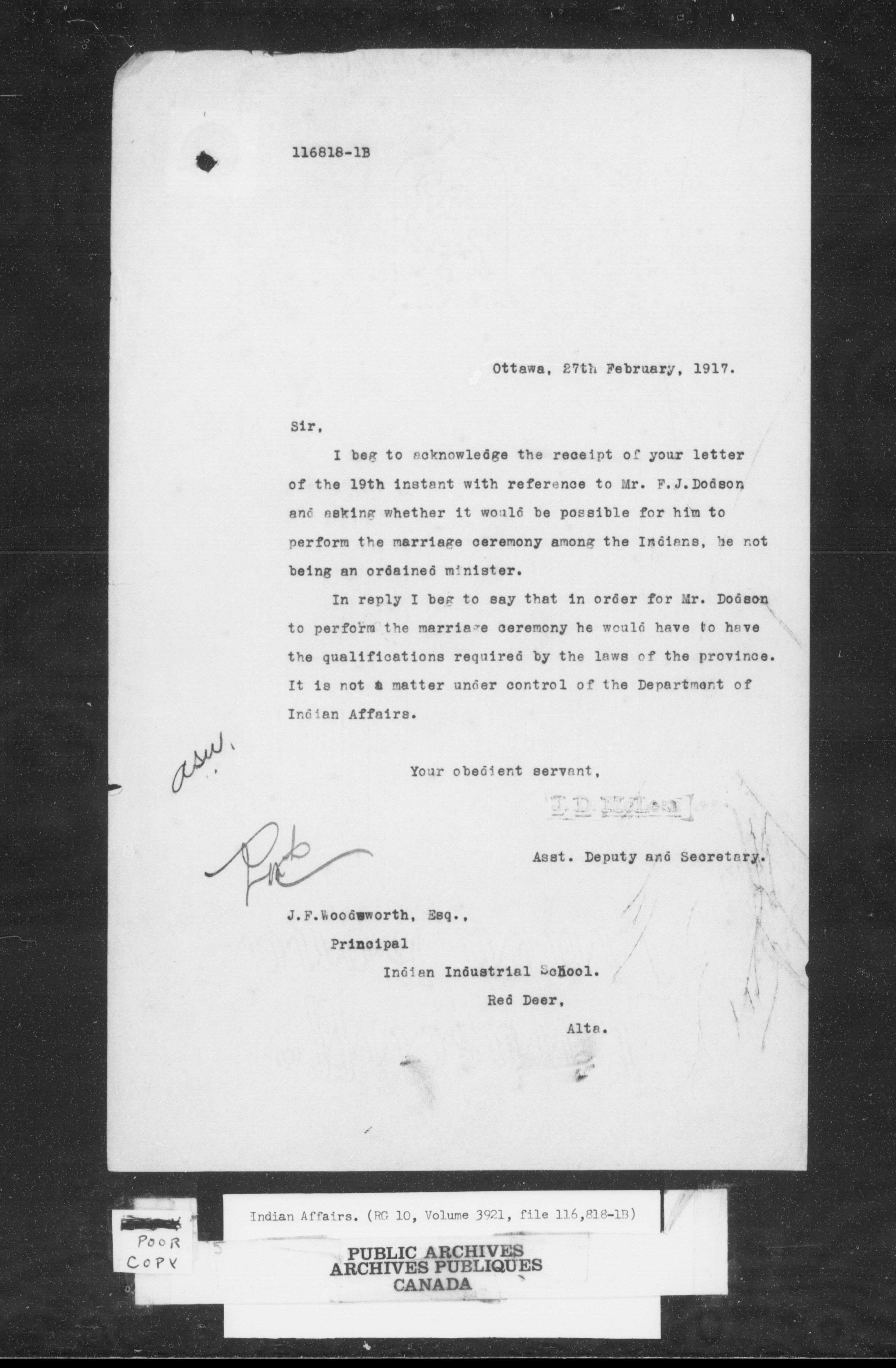 Department of Indian Affairs, Headquarters central registry system : Black series - 10162