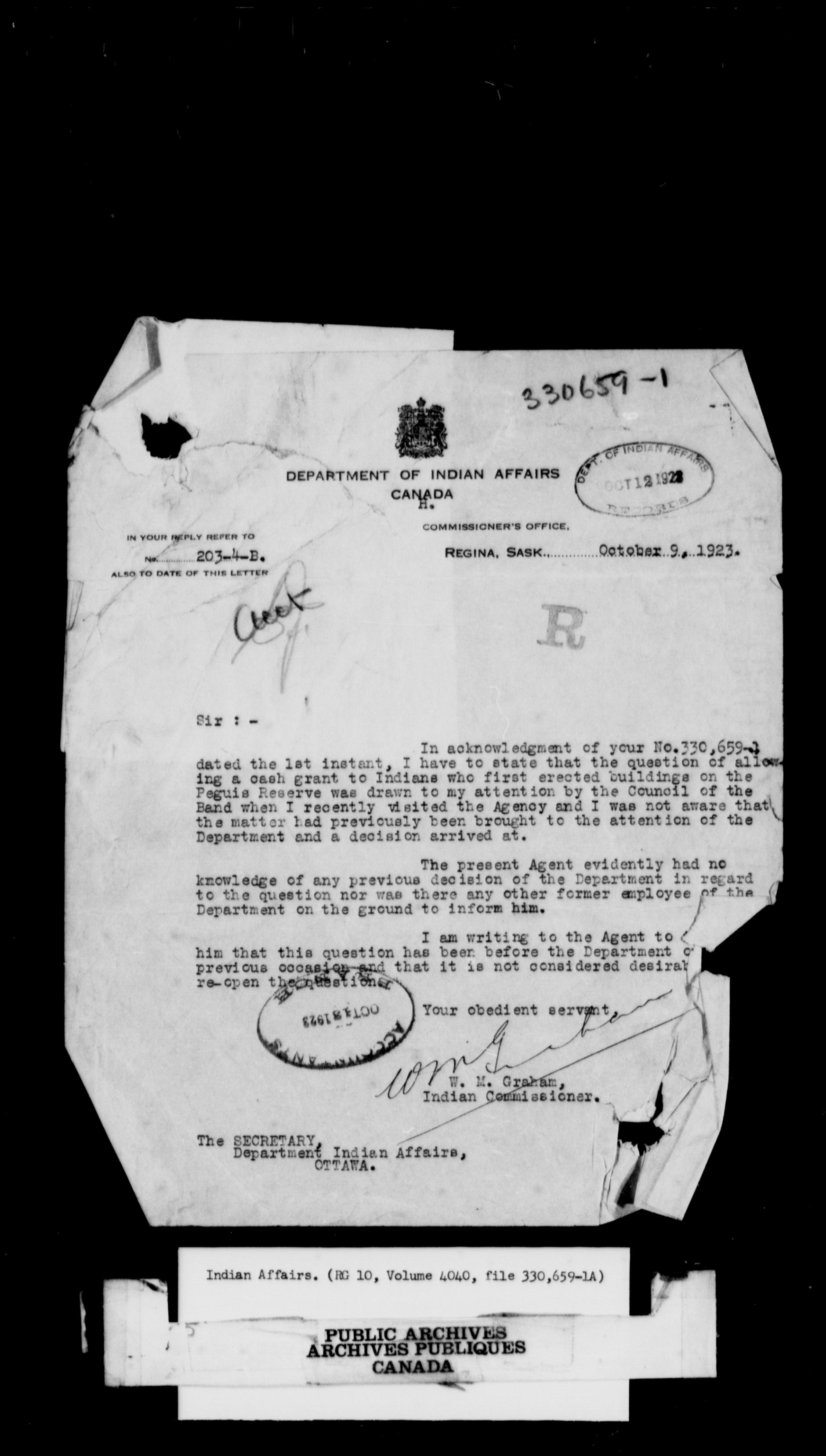 Department of Indian Affairs, Headquarters central registry system : Black Series - C-10177