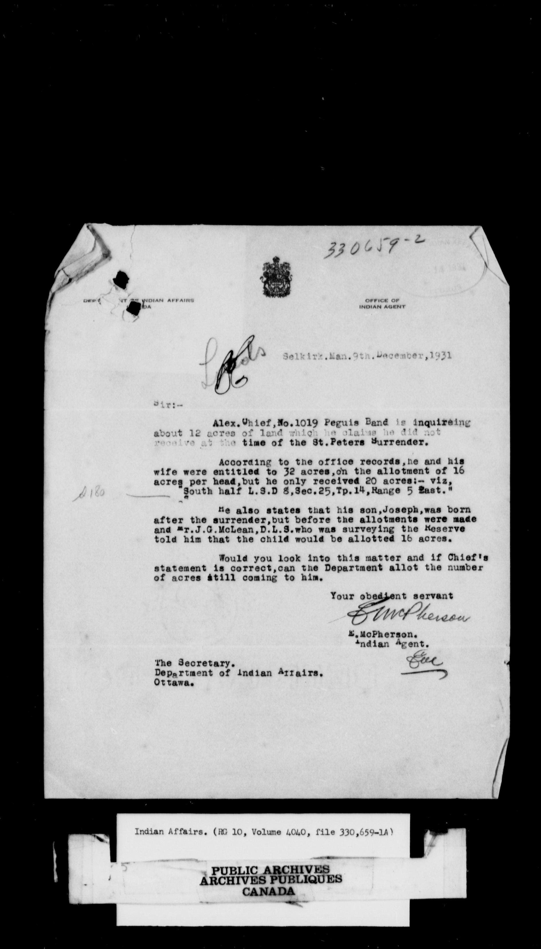 Department of Indian Affairs, Headquarters central registry system : Black Series - C-10177