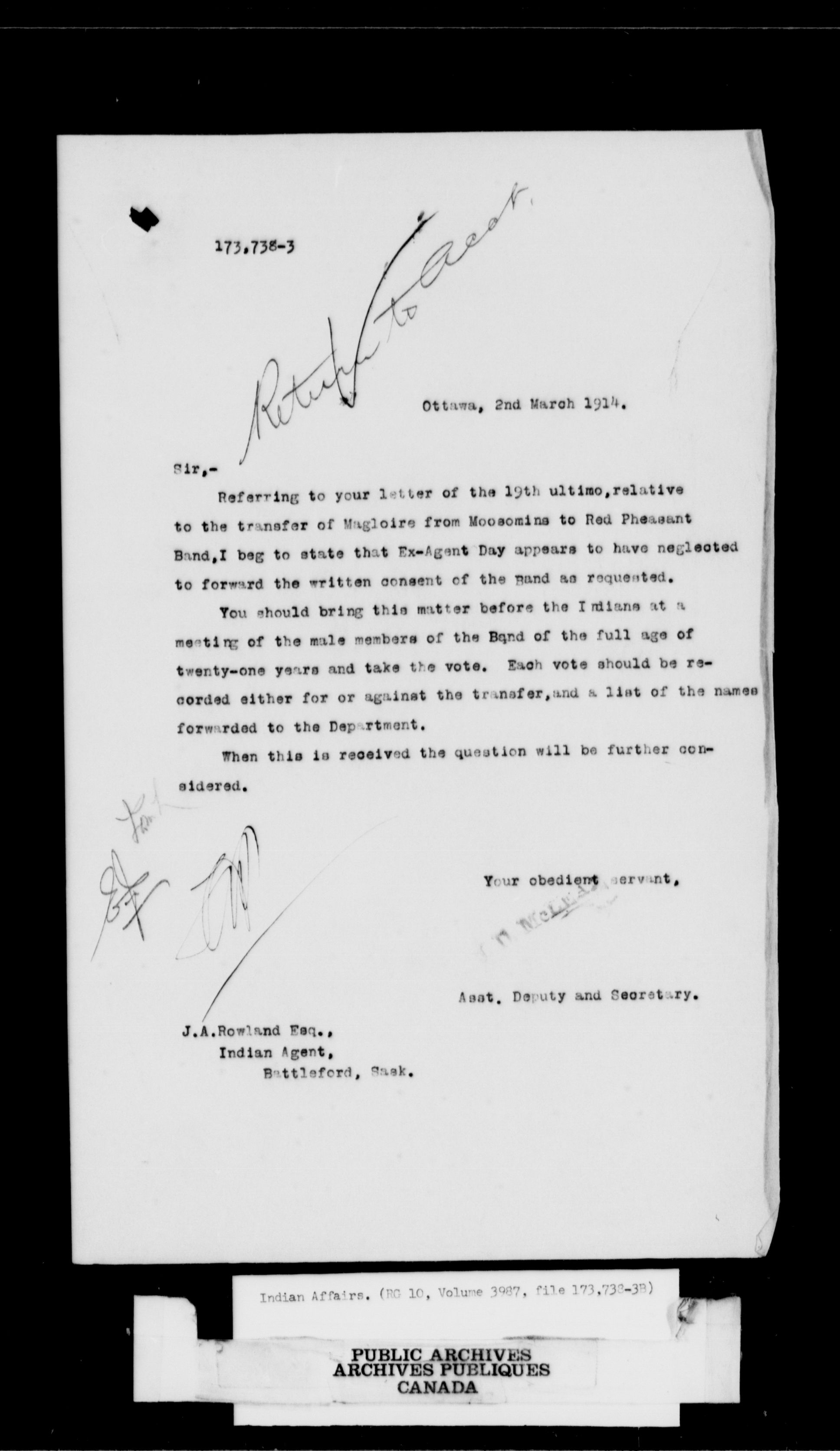 Department of Indian Affairs, Headquarters central registry system : black series - 10202