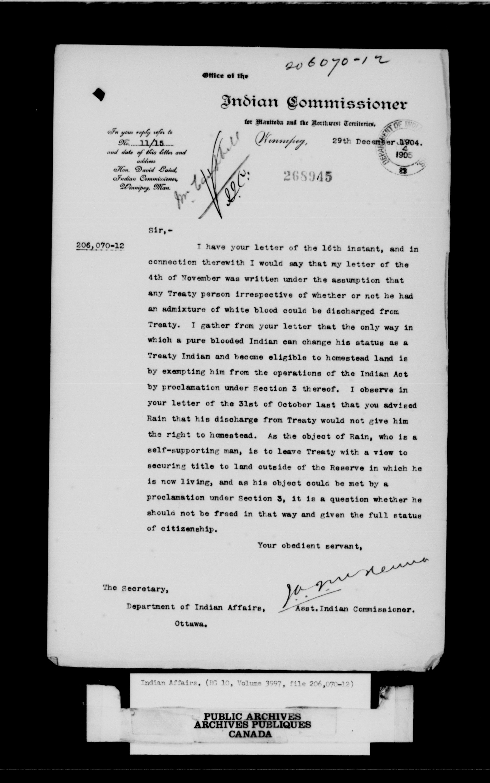 Department of Indian Affairs, Headquarters central registry system : black series : C-10203