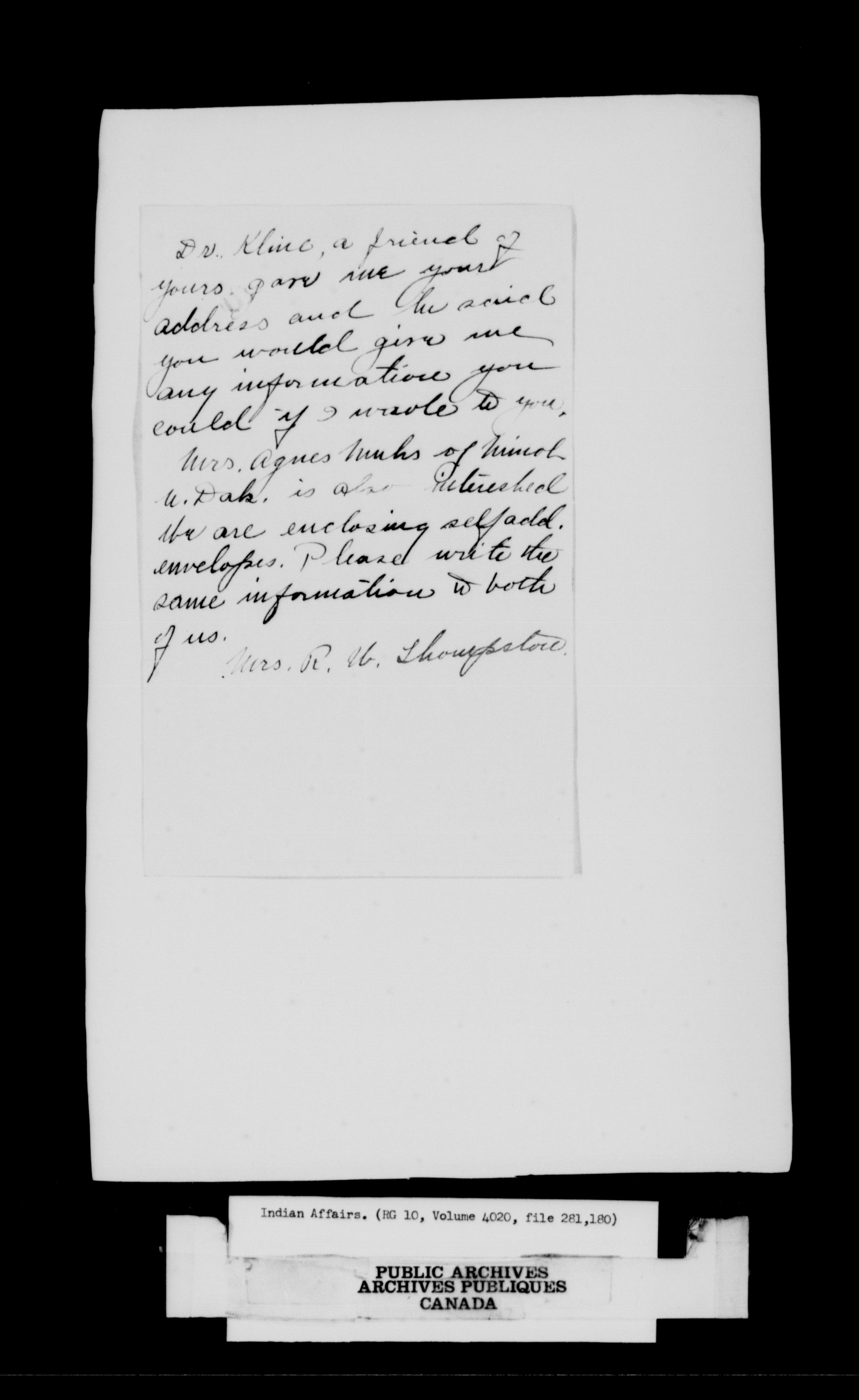 RG 10, Indian Affairs, Black Series - 10203