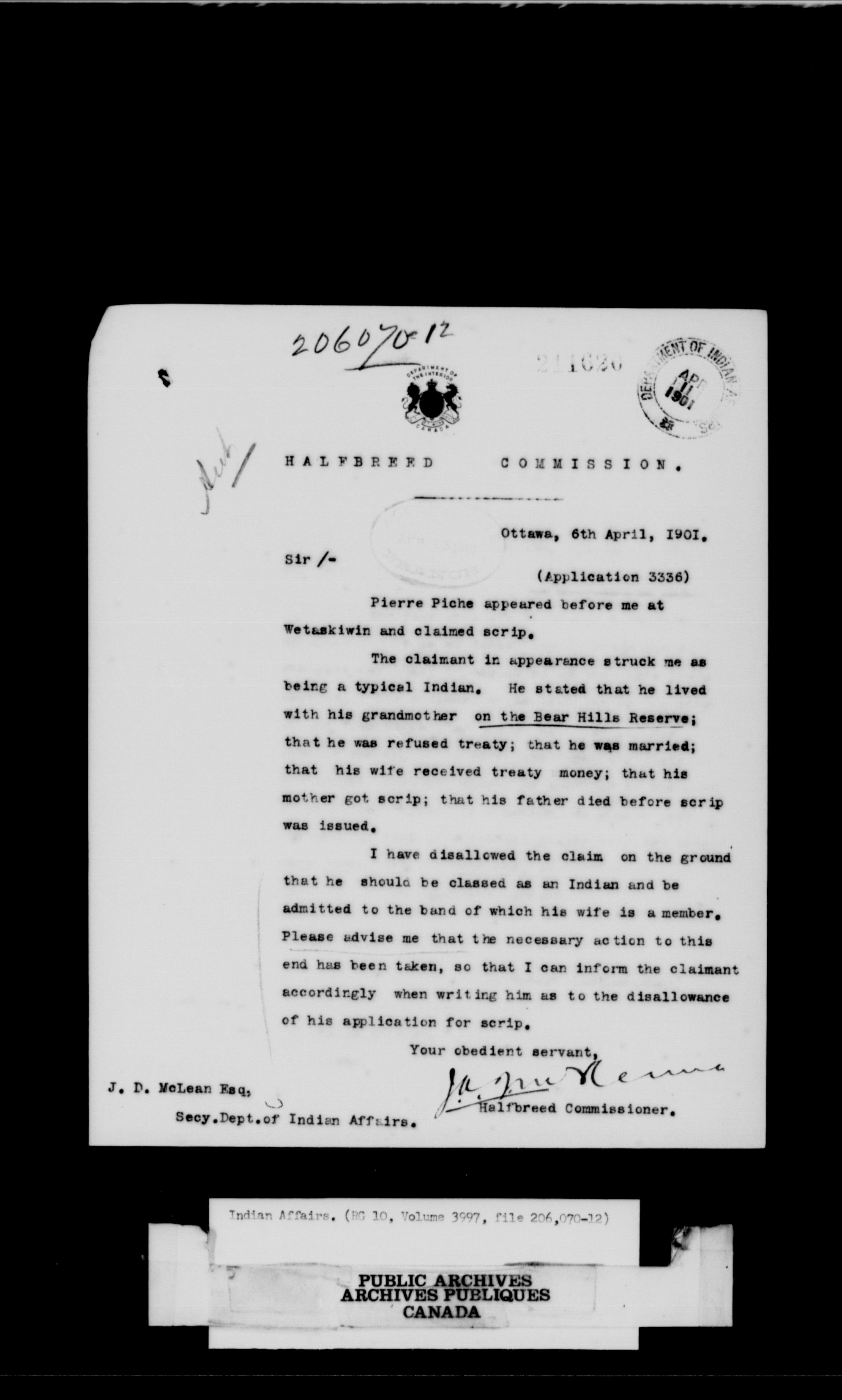 Department of Indian Affairs, Headquarters central registry system : black series : C-10203