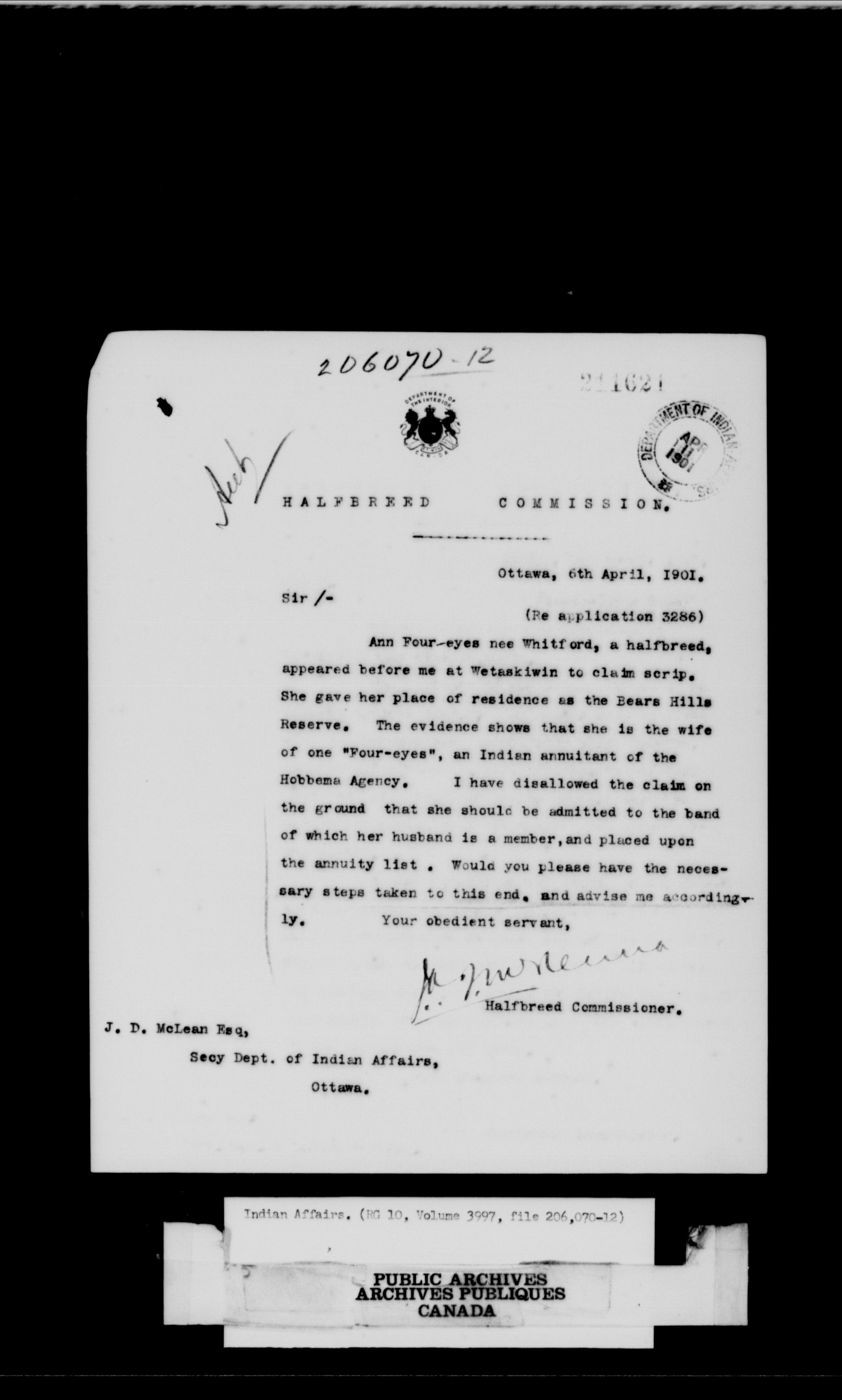 Department of Indian Affairs, Headquarters central registry system : black series : C-10203