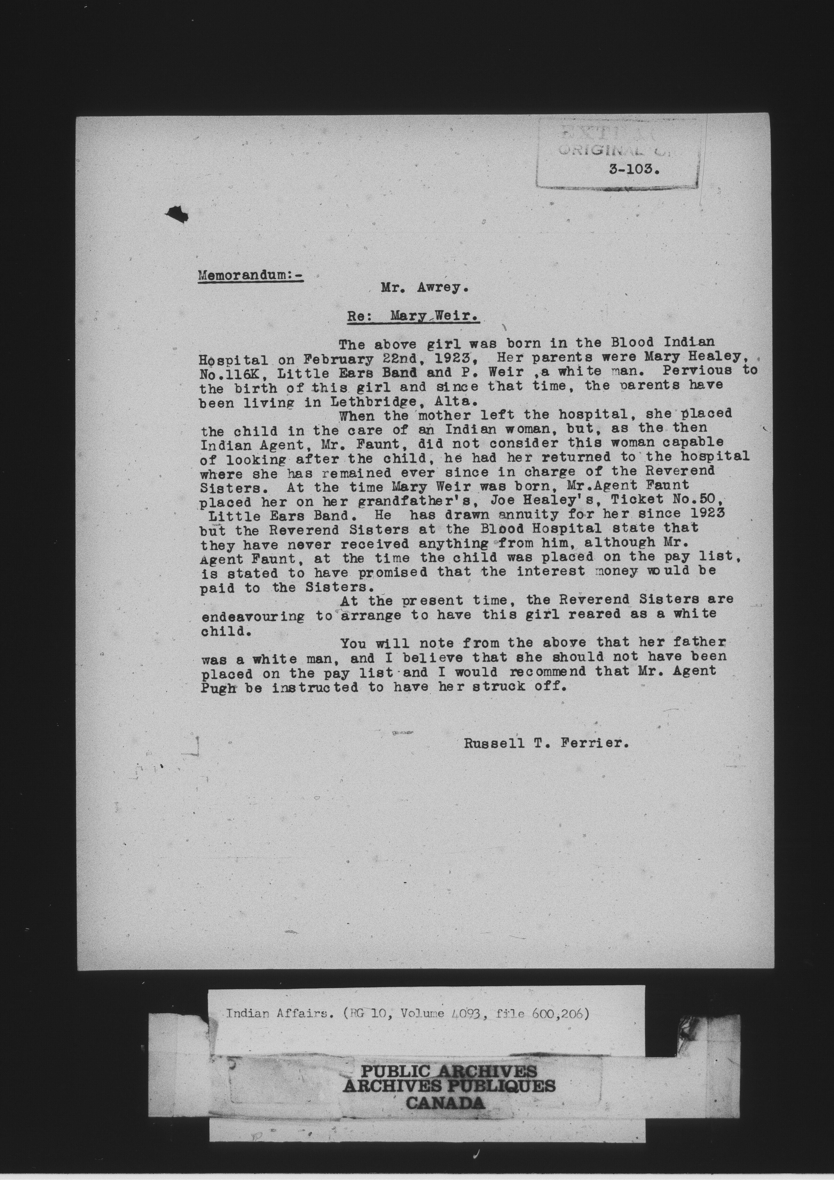 Department of Indian Affairs, Headquarters central registry system : black series - C-10205