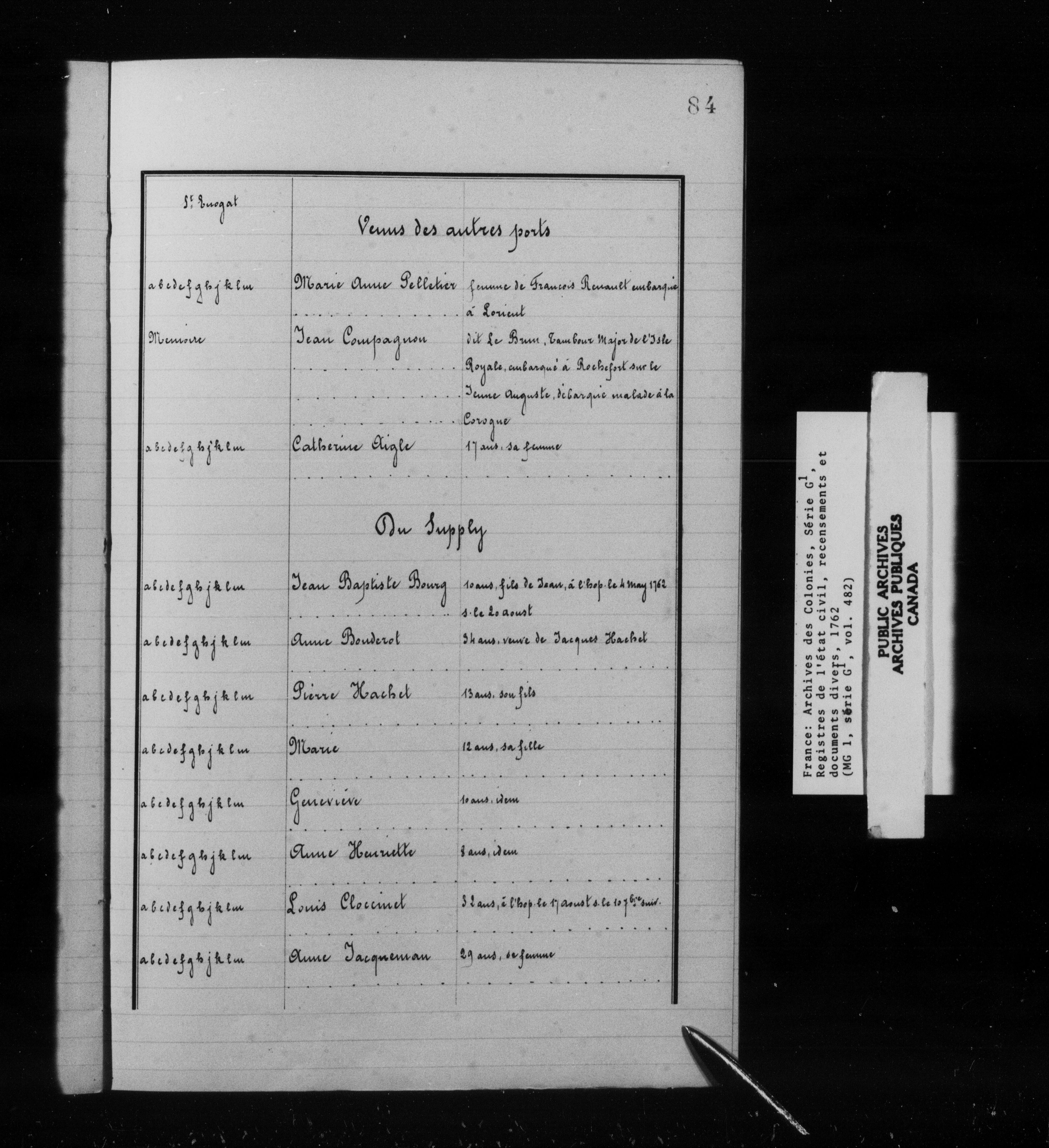 Archives des Colonies : Registres de l'état civil, Série G1 - 10207