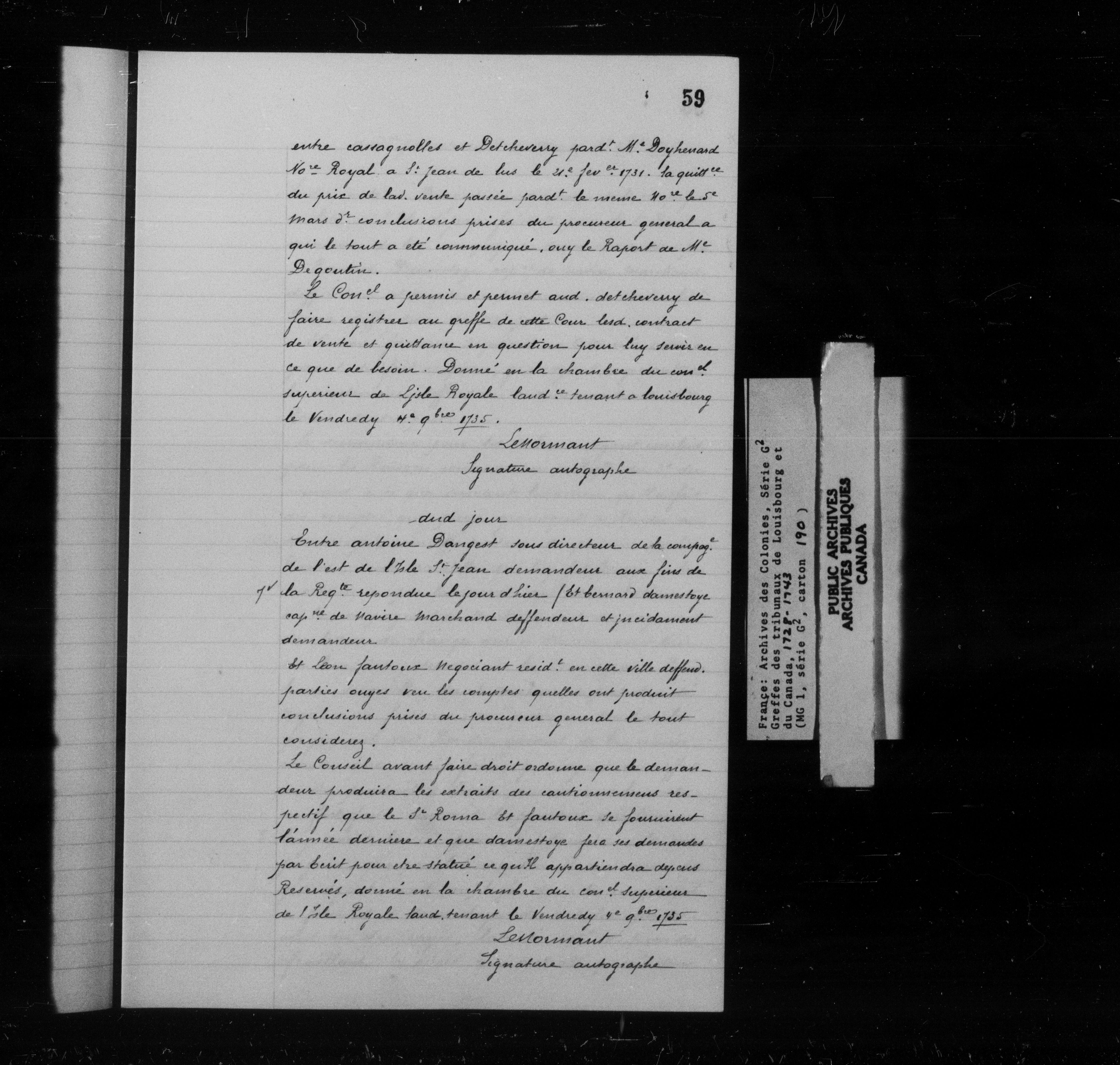 France: Archives des Colonies, Série G2, Greffes des tribunaux de Louisbourg et du Canada - 10214