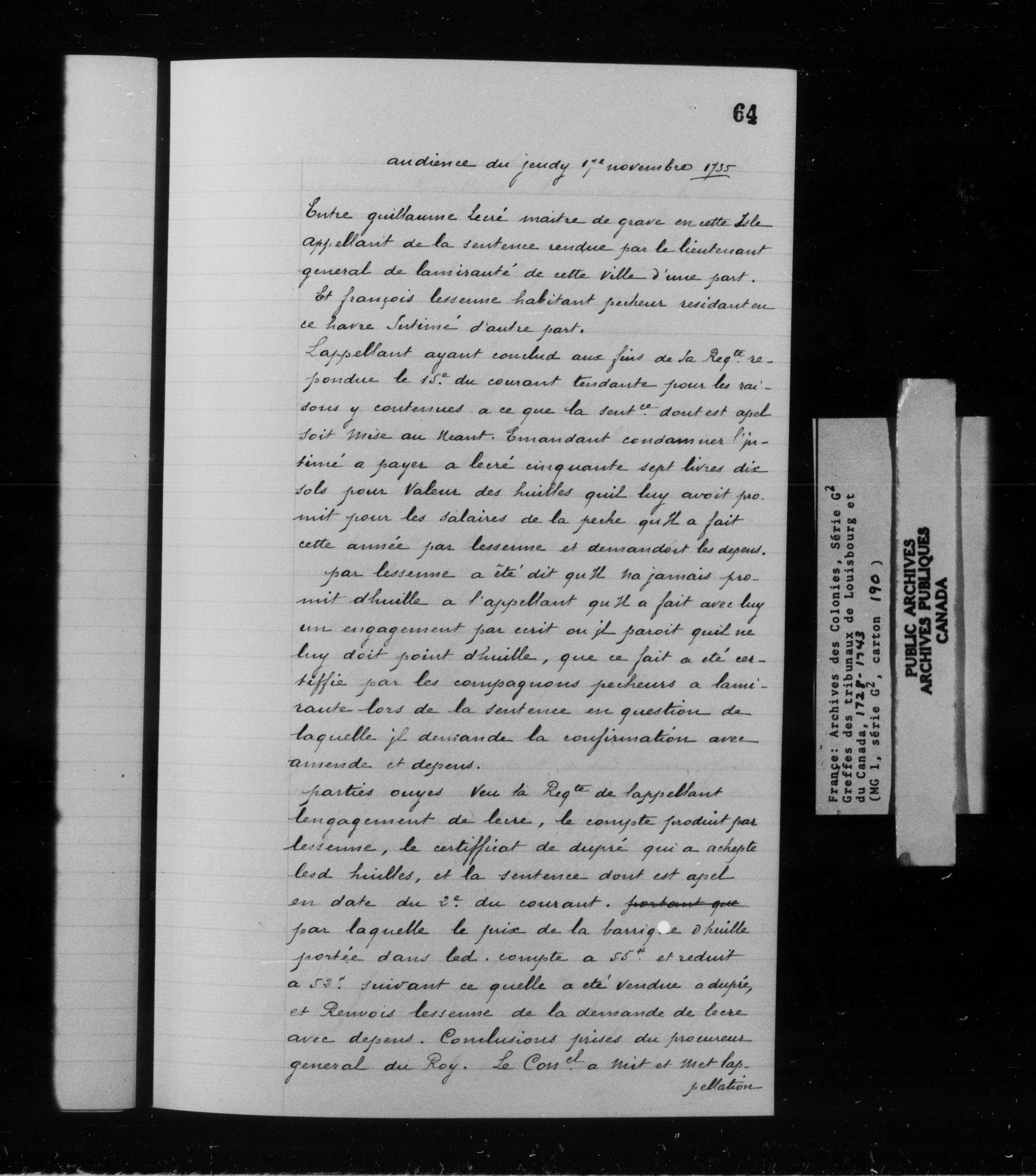 France: Archives des Colonies, Série G2, Greffes des tribunaux de Louisbourg et du Canada - 10214