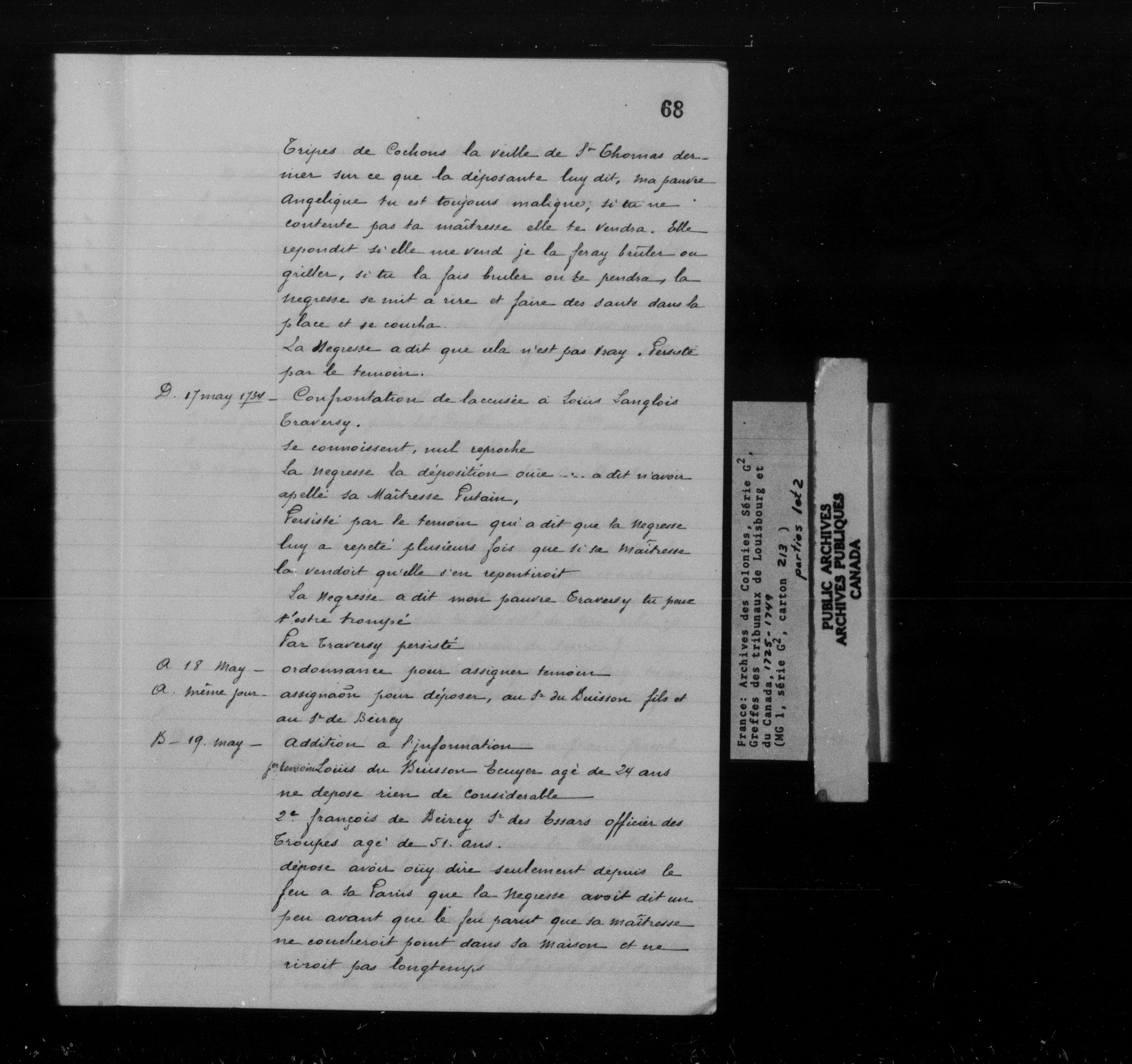 France: Archives des Colonies, Série G2, Greffes des tribunaux de Louisbourg et du Canada - 10215