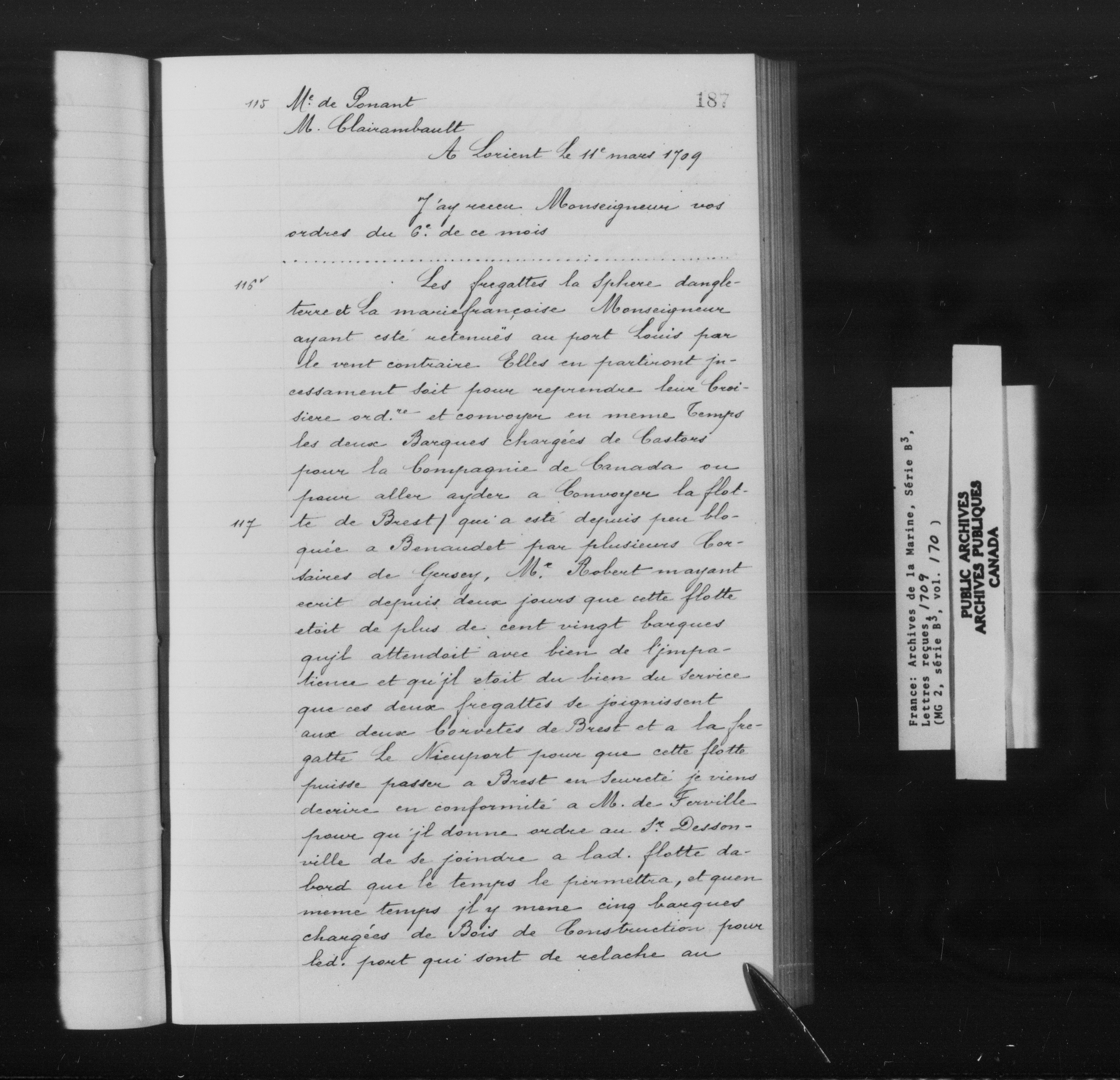France. Archives de la Marine. Fonds de la Marine : Série B3, Lettres reçues : C-10226