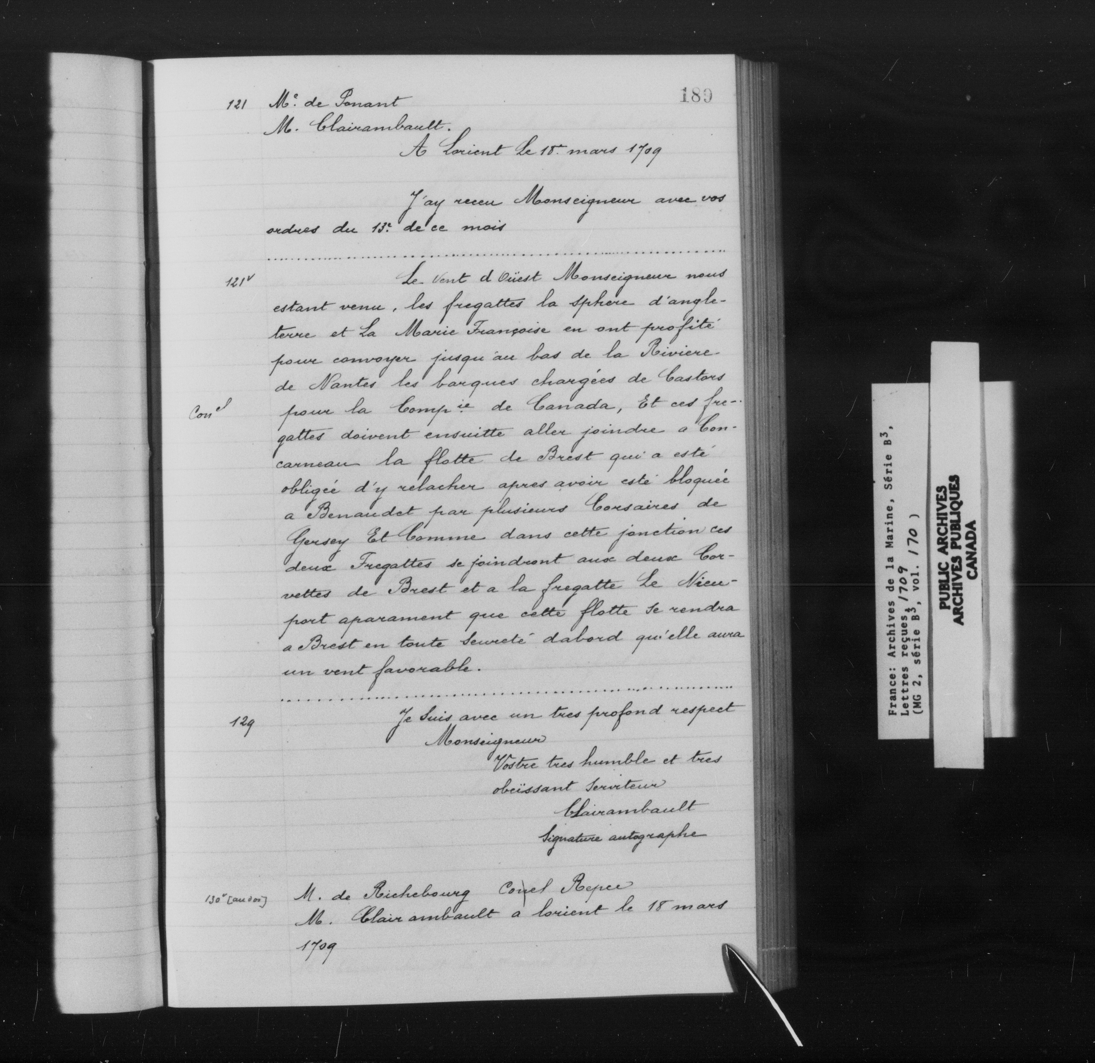 France. Archives de la Marine. Fonds de la Marine : Série B3, Lettres reçues : C-10226