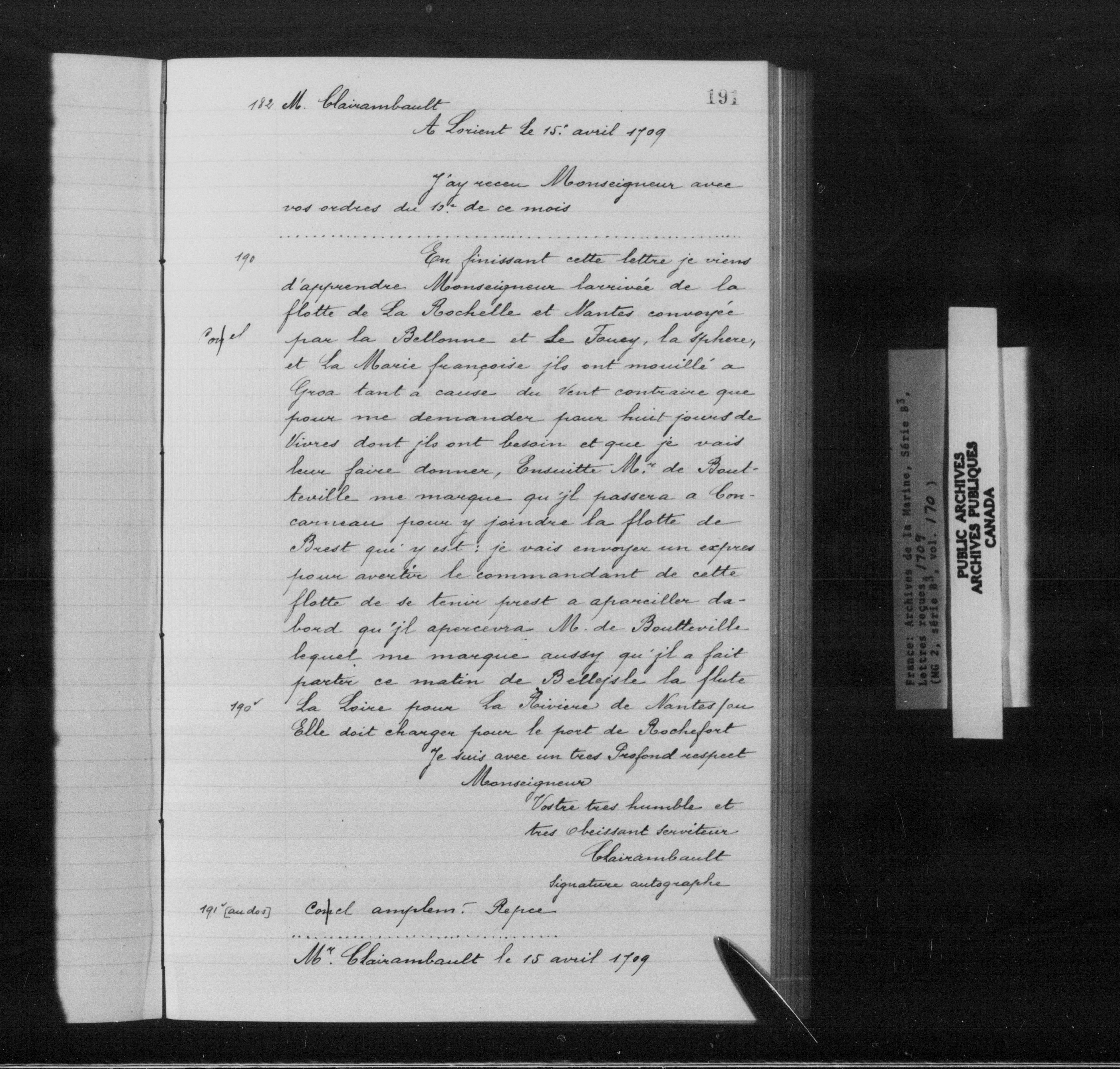 France. Archives de la Marine. Fonds de la Marine : Série B3, Lettres reçues : C-10226