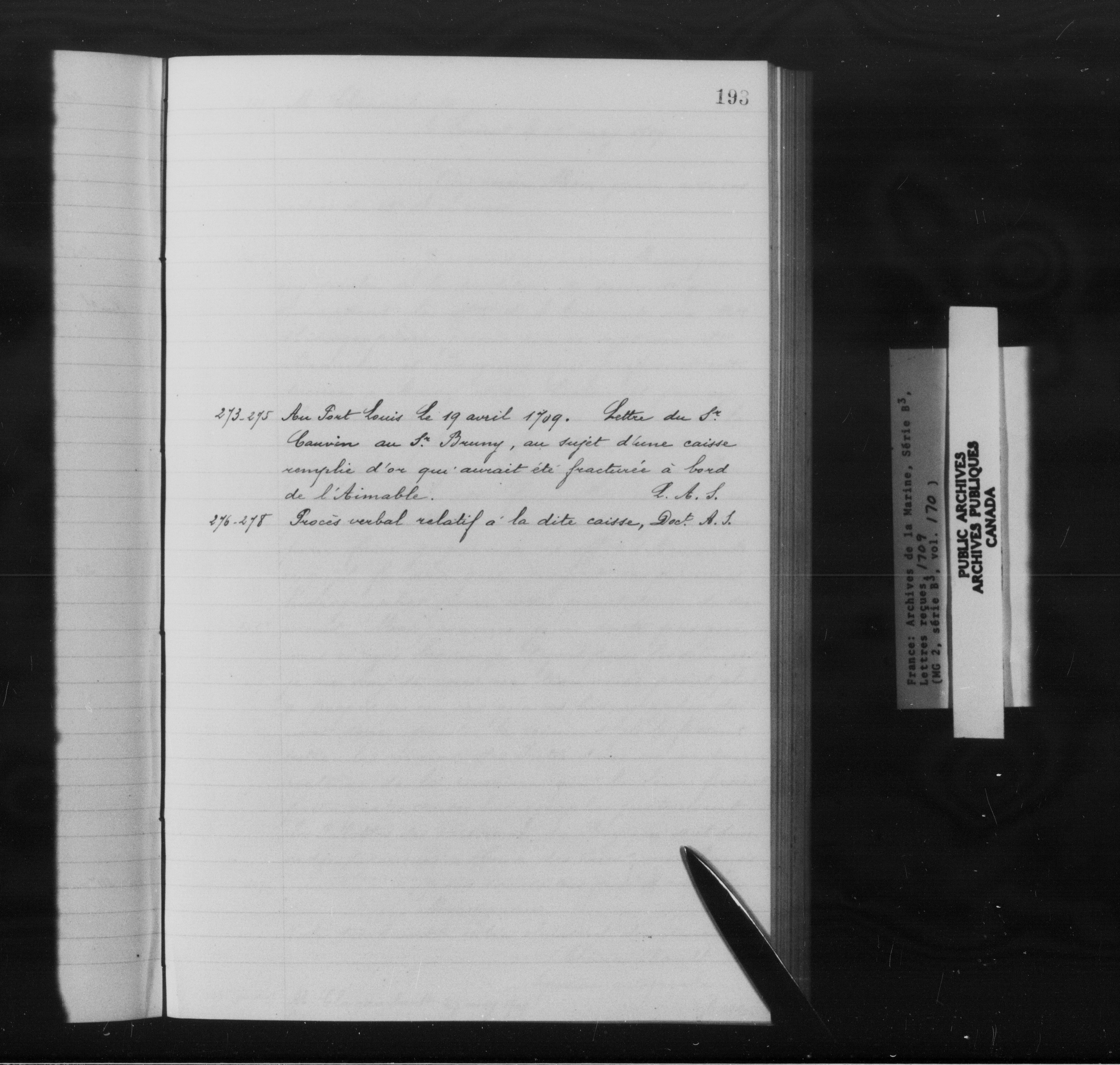 France : Archives de la Marine, Série B3, Décisions, lettres reçues - 10226