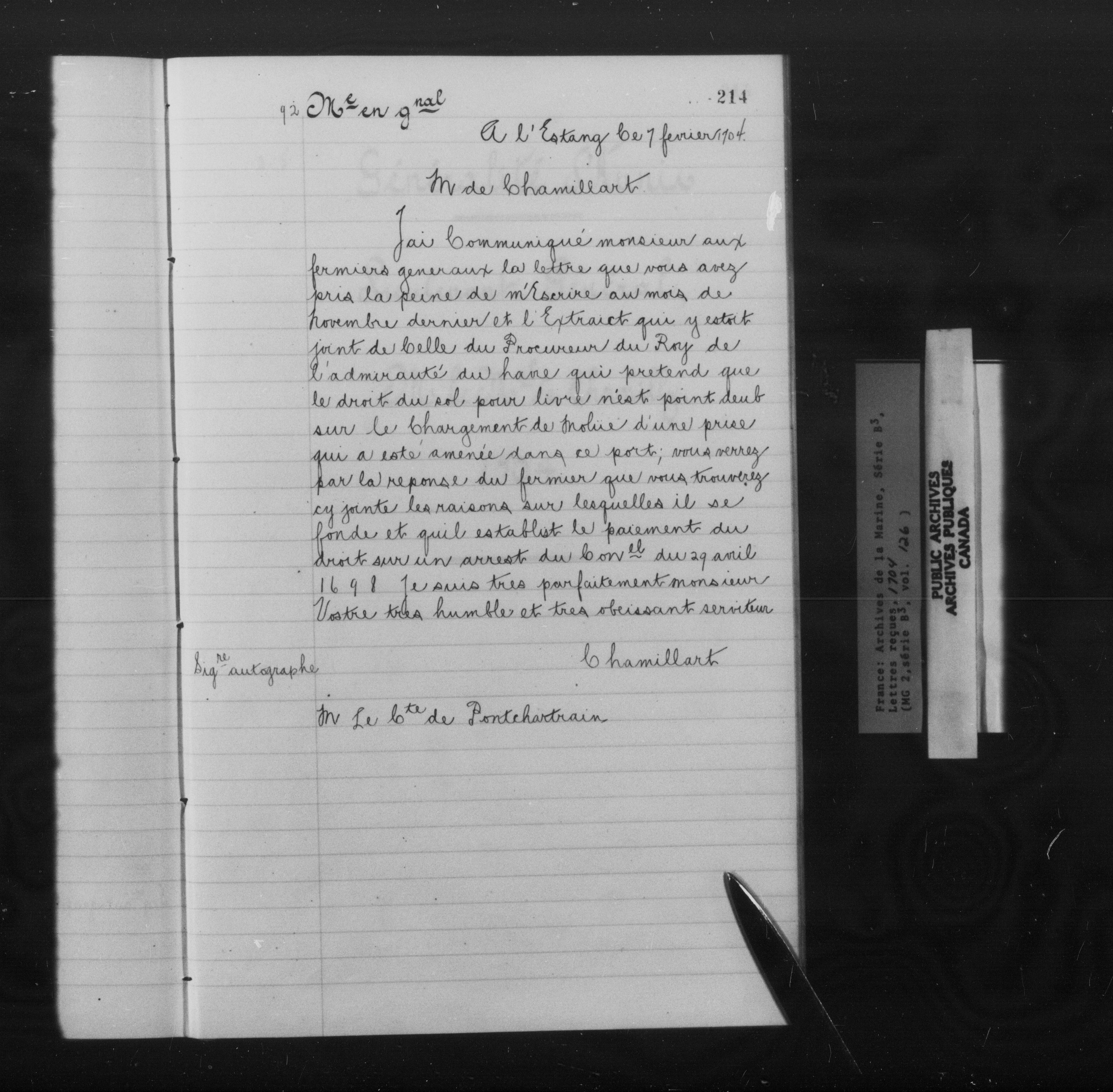 France : Archives de la Marine, Série B3, Décisions, lettres reçues - 10226