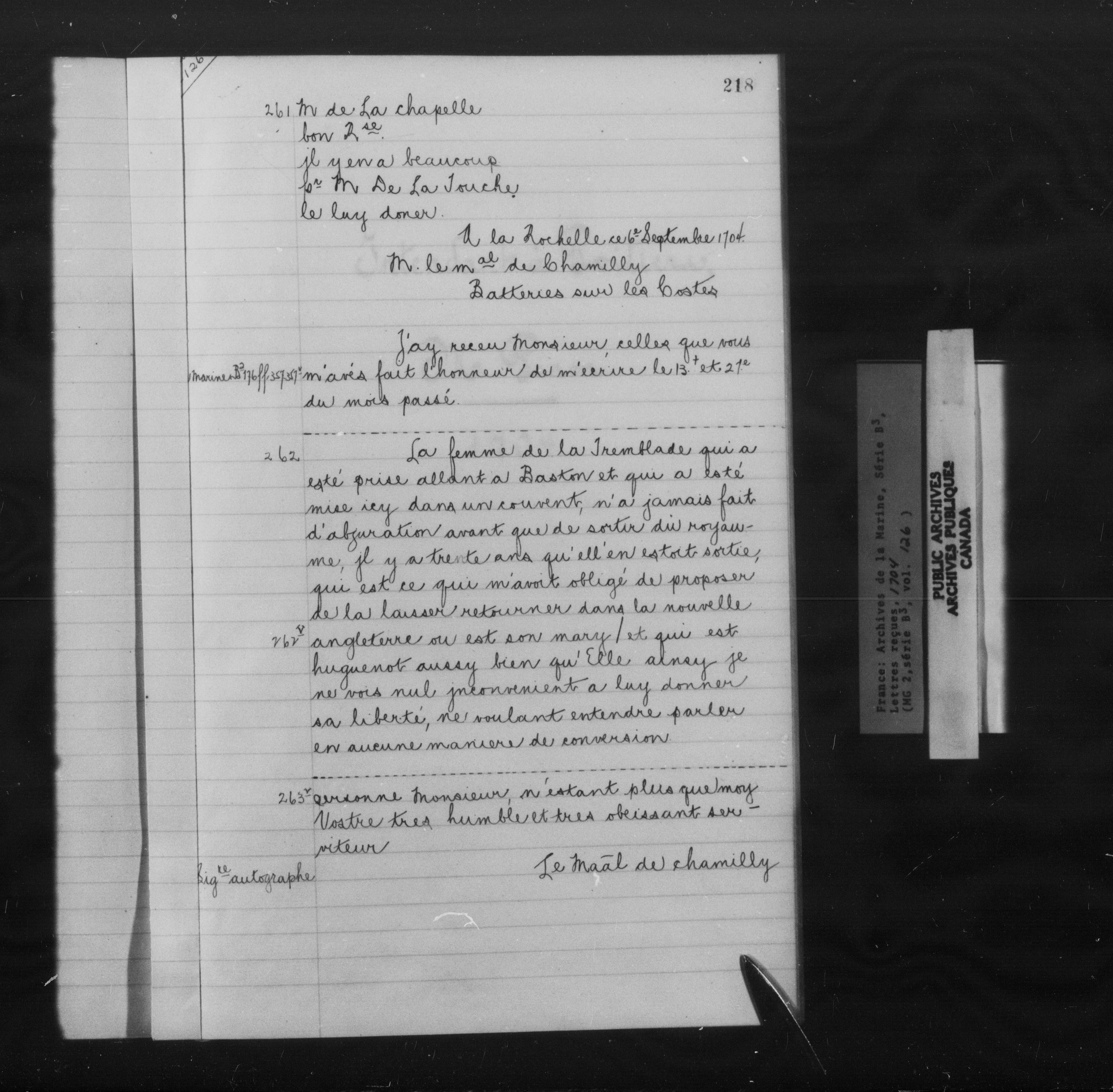 France : Archives de la Marine, Série B3, Décisions, lettres reçues - 10226