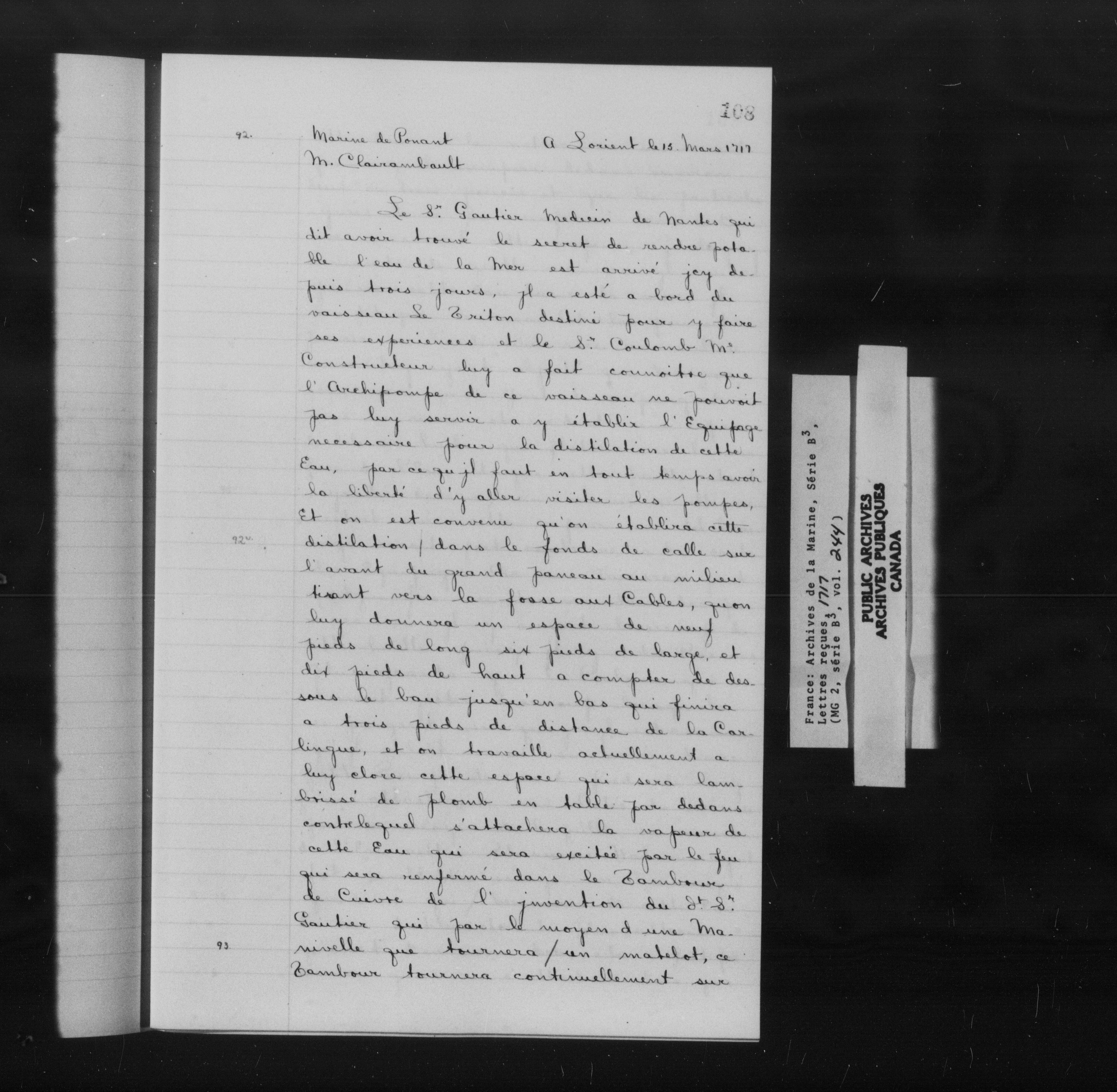 France. Archives de la Marine. Fonds de la Marine : Série B3, Lettres reçues : C-10227