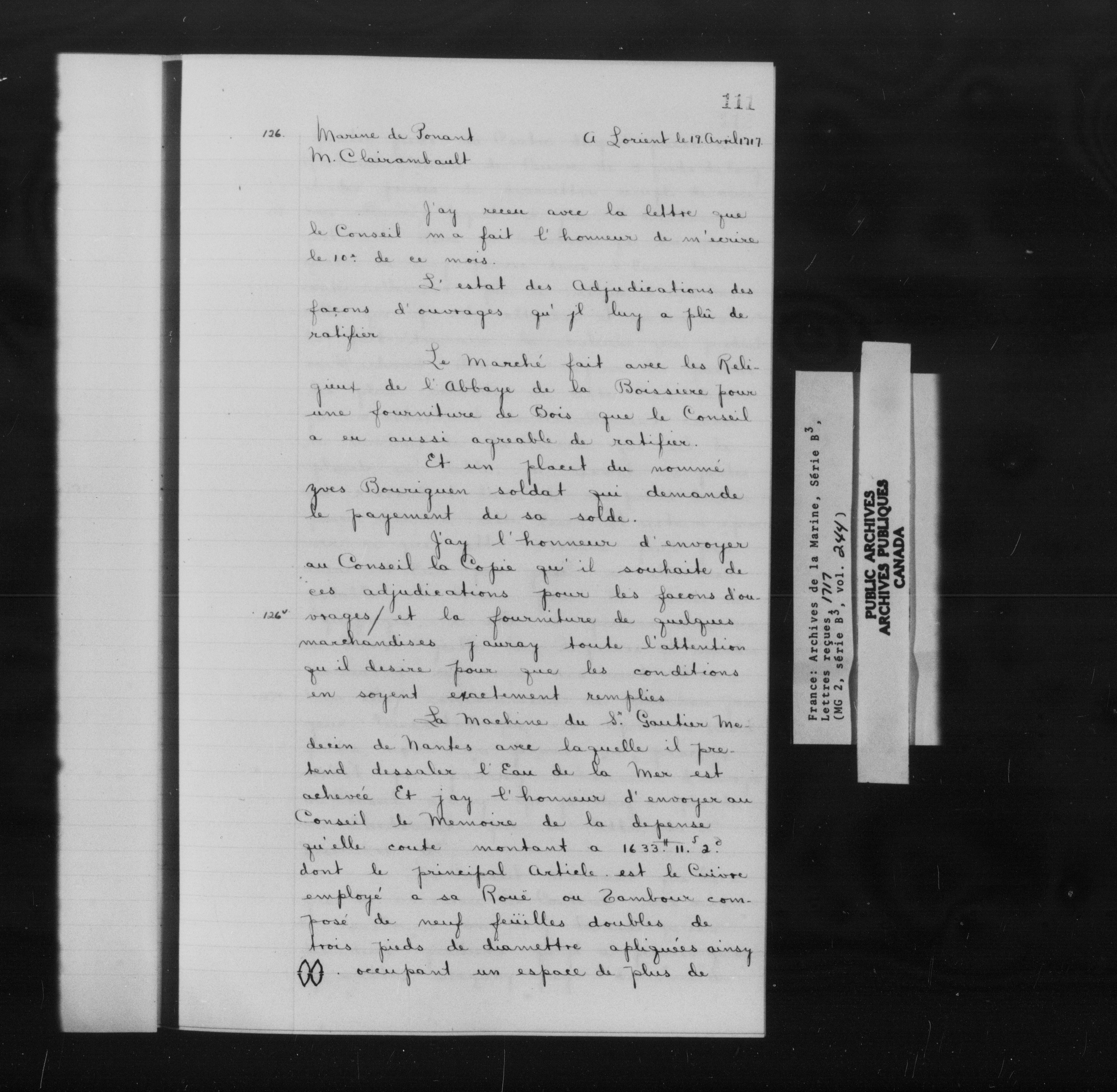 France : Archives de la Marine, Série B3, Décisions, lettres reçues - 10227