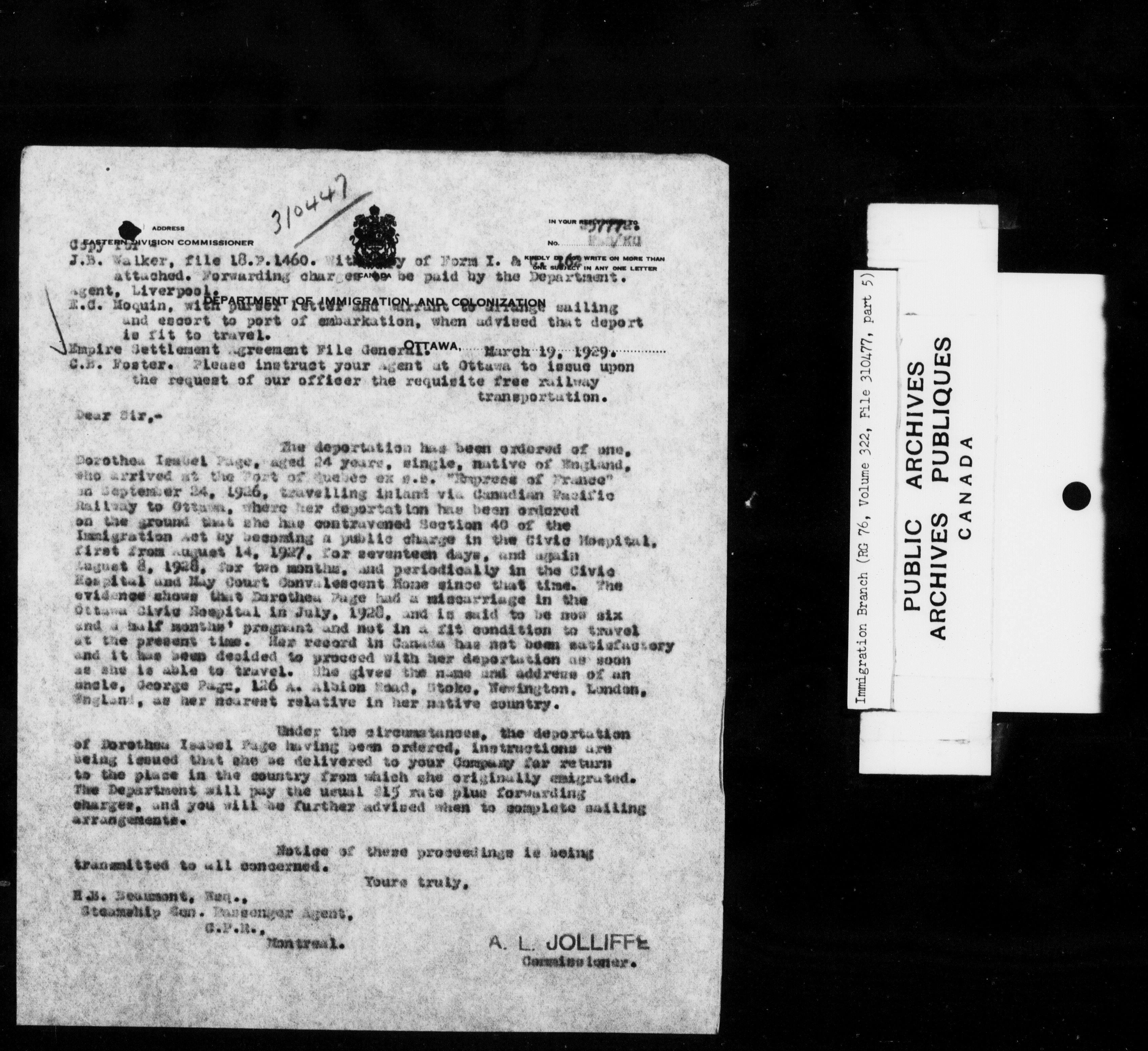 Subject, policy and case files in the First Central Registry series of the Immigration Program, 1892-1950 - 10235