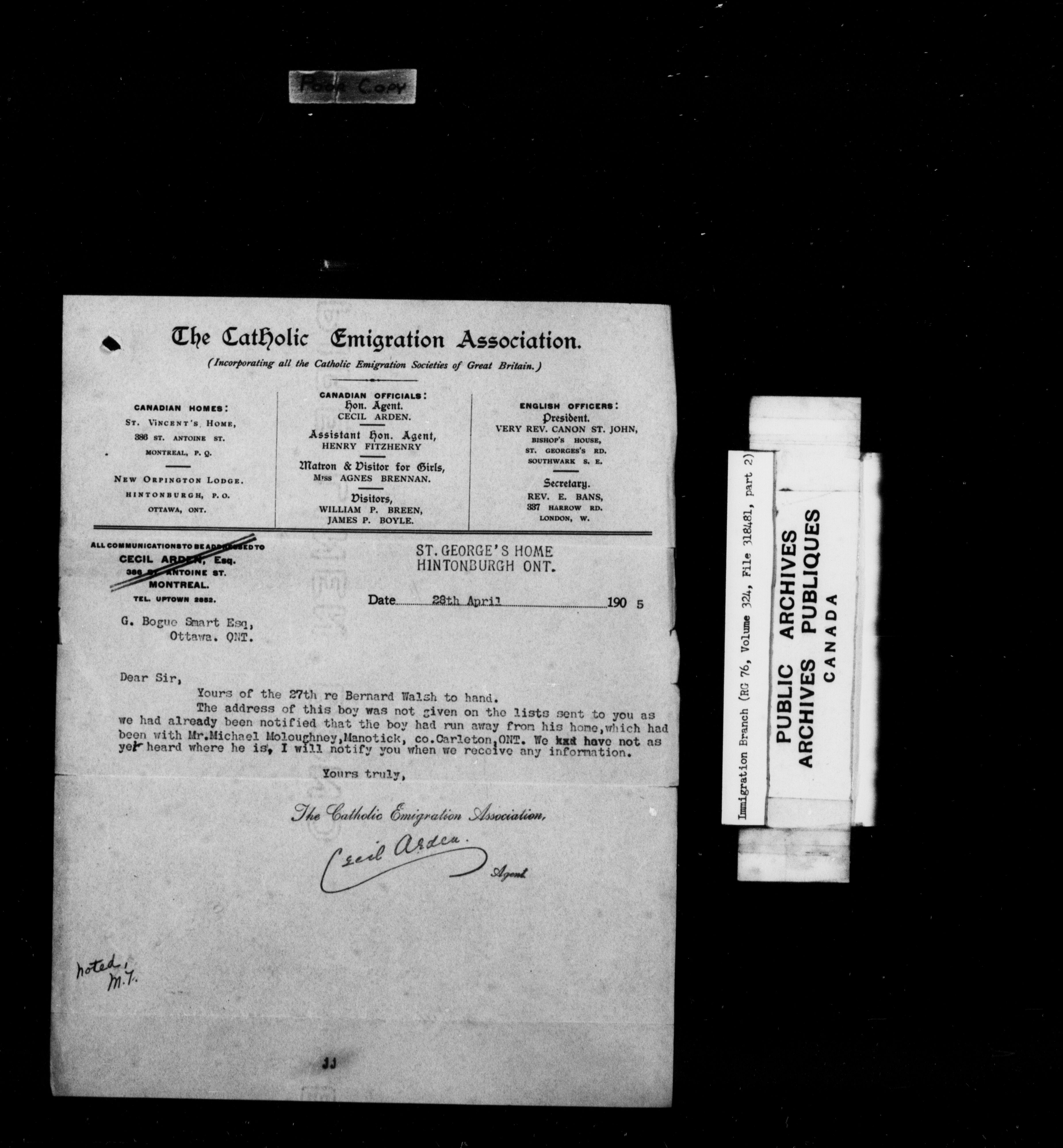 Subject, policy and case files in the First Central Registry series of the Immigration Program, 1892-1950 - 10237