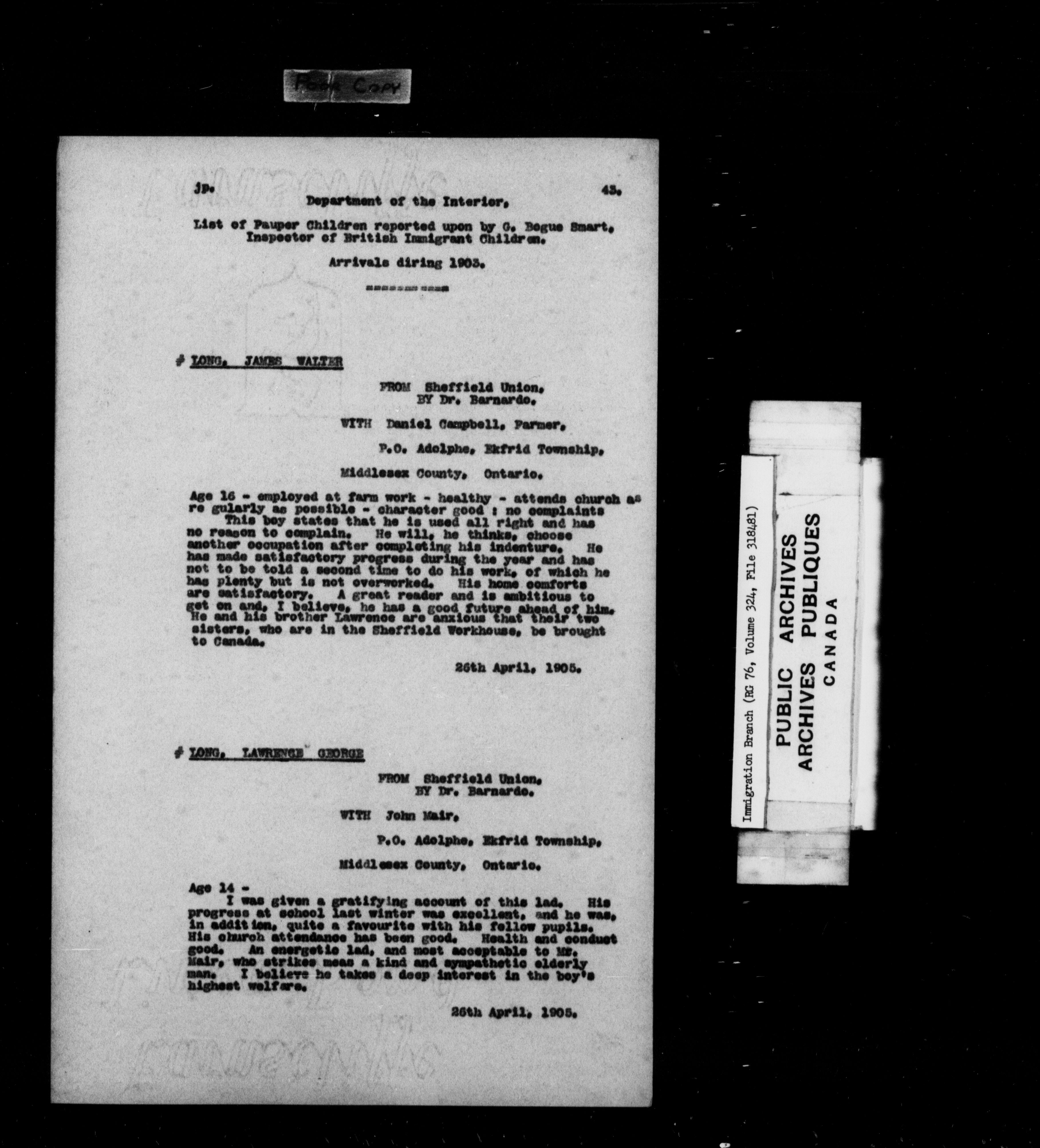 Subject, policy and case files in the First Central Registry series of the Immigration Program, 1892-1950 - 10237