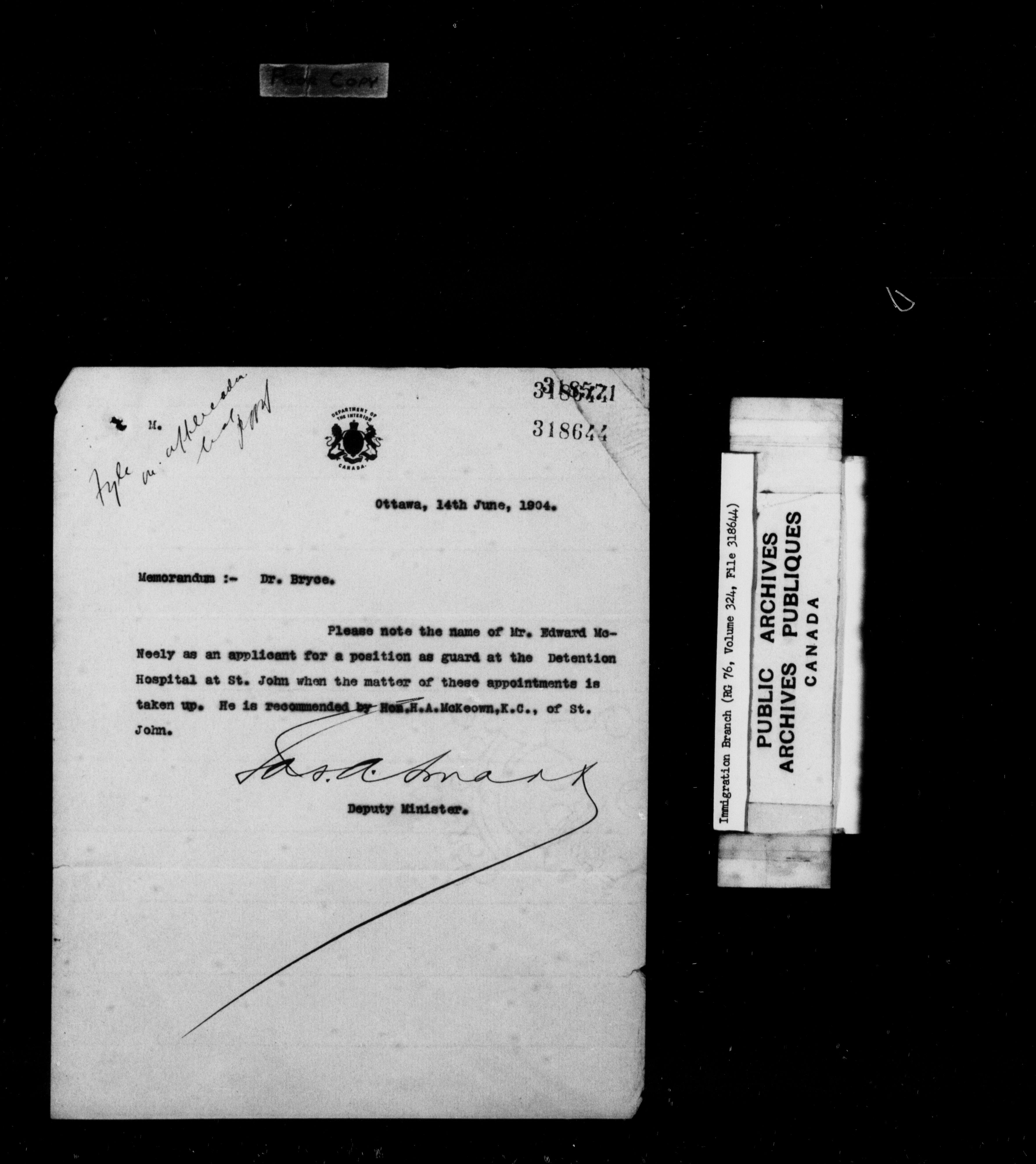 Subject, policy and case files in the First Central Registry series of the Immigration Program, 1892-1950 - 10237