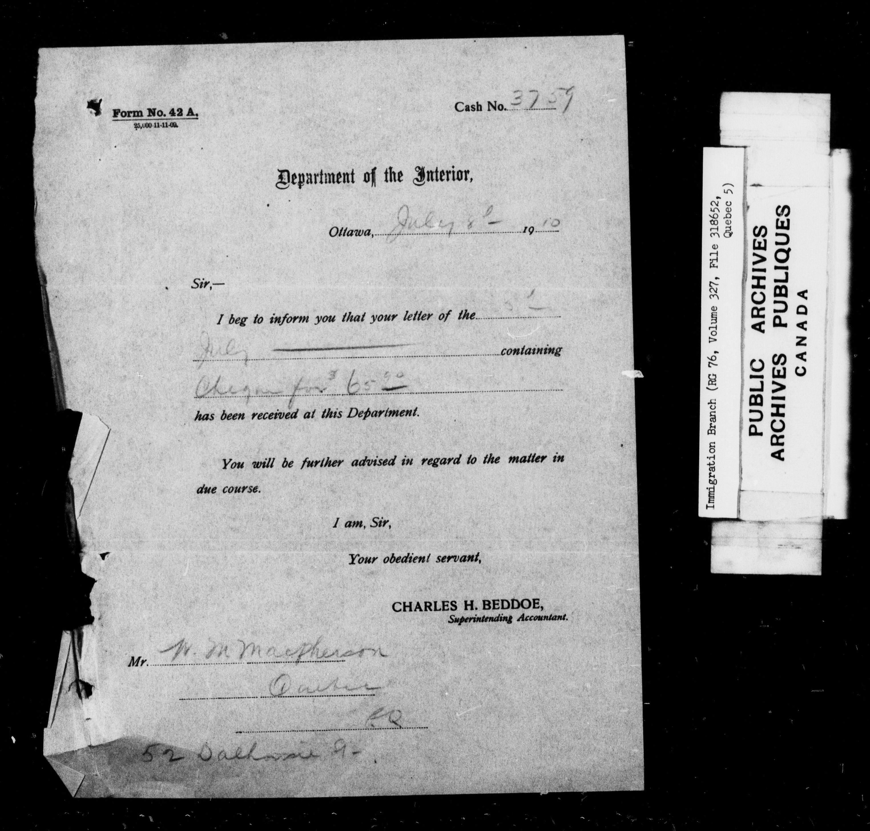 Subject, policy and case files in the First Central Registry series of the Immigration Program, 1892-1950 - 10239
