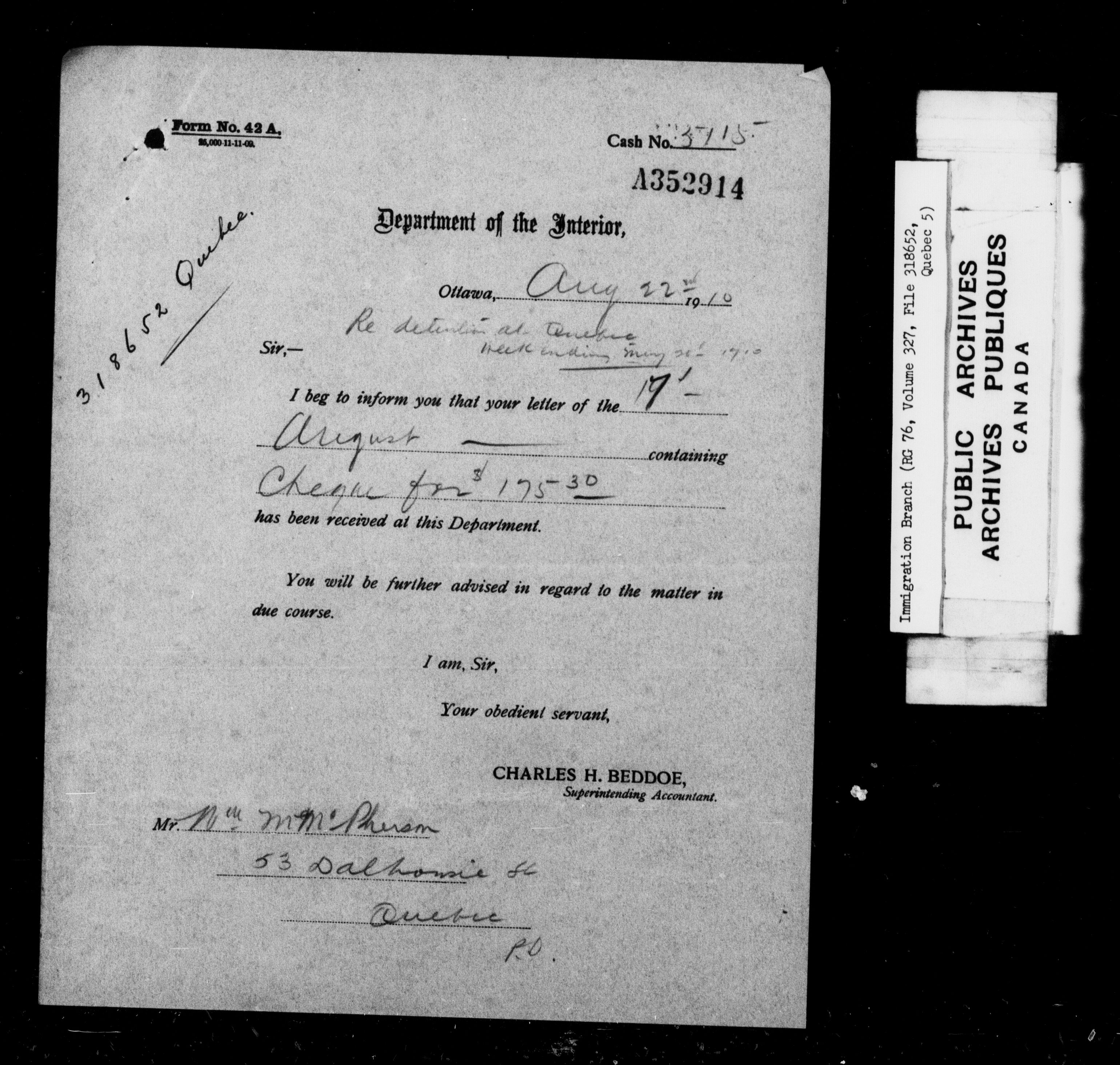 Subject, policy and case files in the First Central Registry series of the Immigration Program, 1892-1950 - 10239