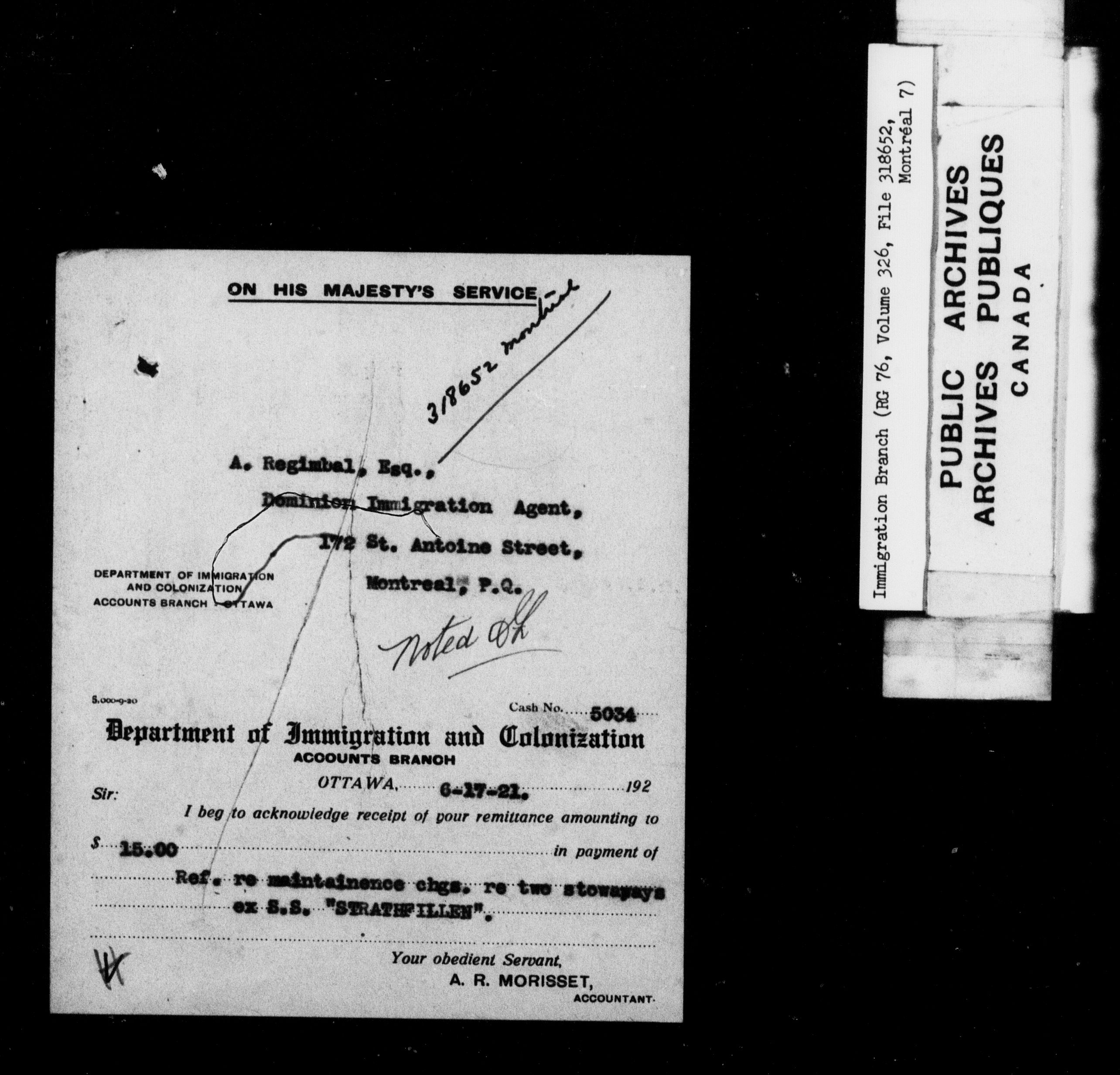 Subject, policy and case files in the First Central Registry series of the Immigration Program, 1892-1950 - 10239
