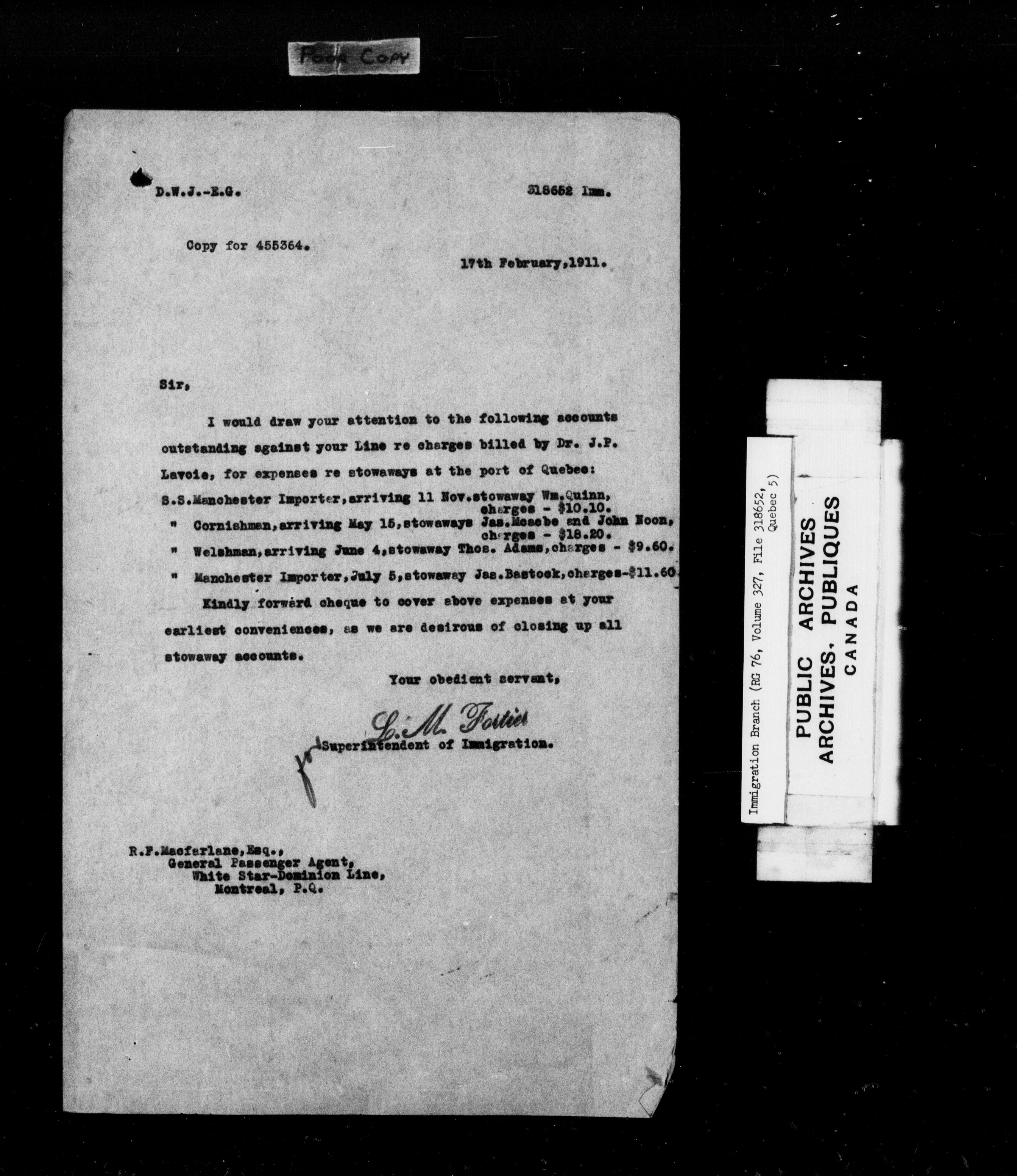 Subject, policy and case files in the First Central Registry series of the Immigration Program, 1892-1950 - 10240