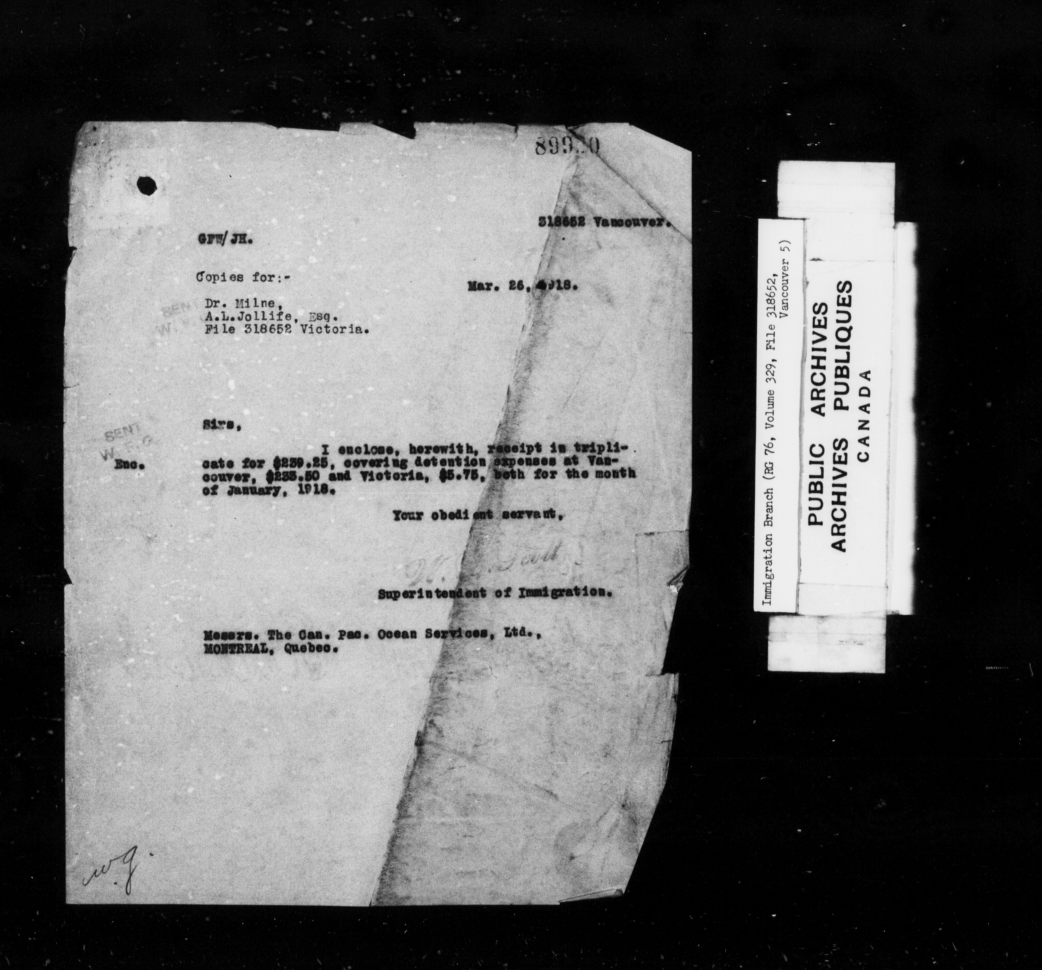 Subject, policy and case files in the First Central Registry series of the Immigration Program, 1892-1950 - 10241