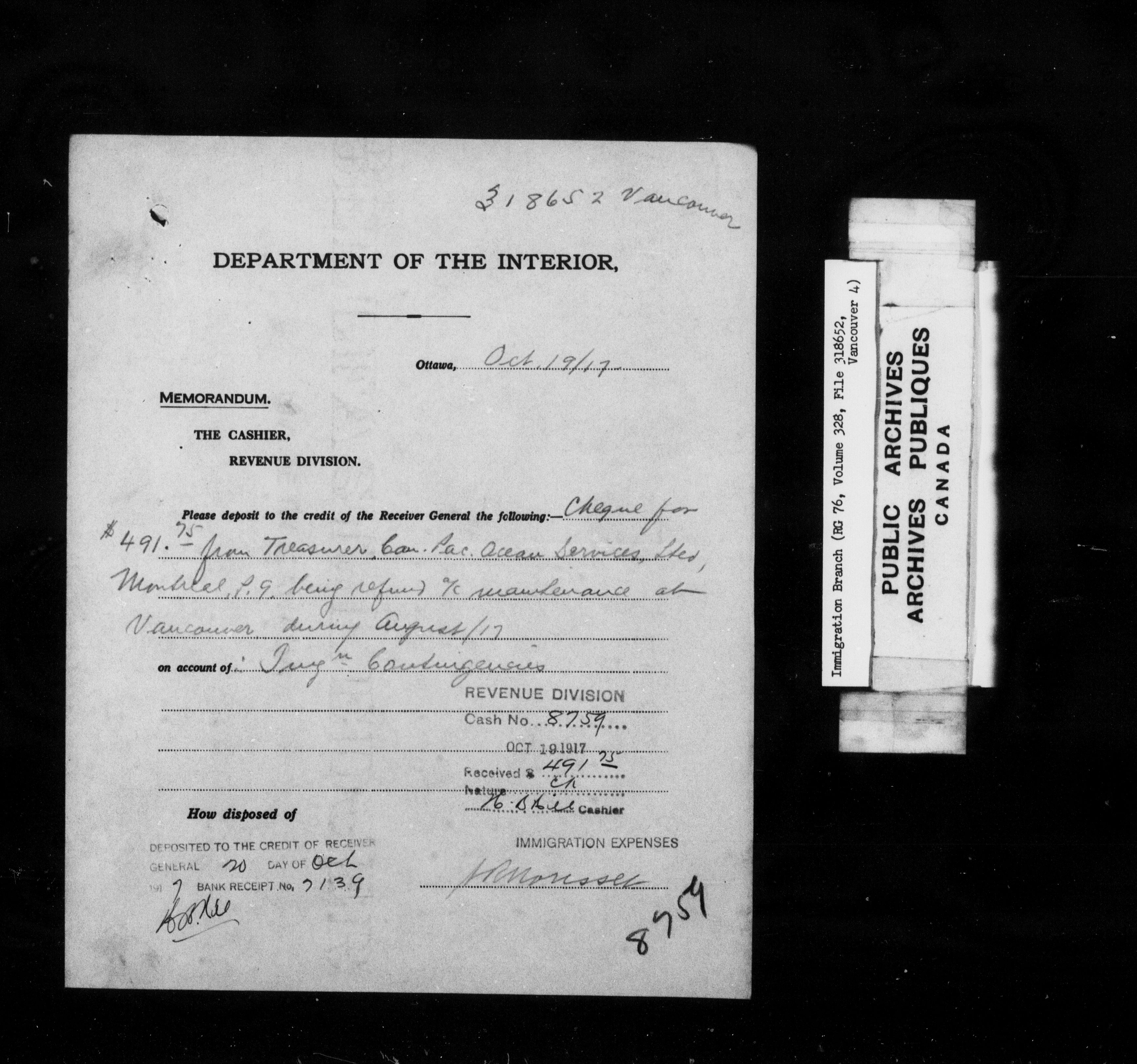 Subject, policy and case files in the First Central Registry series of the Immigration Program, 1892-1950 - 10241