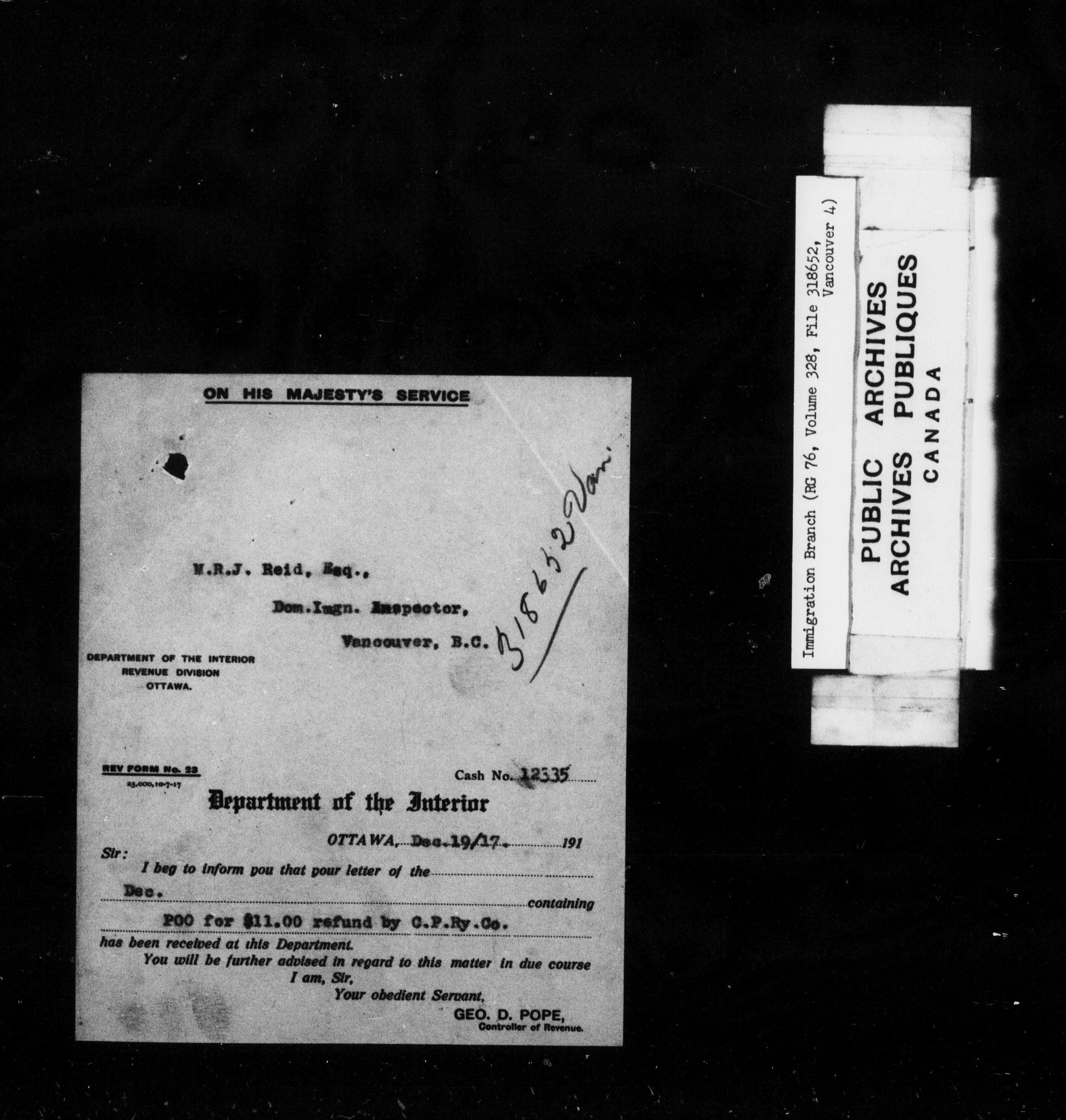 Subject, policy and case files in the First Central Registry series of the Immigration Program, 1892-1950 - 10241