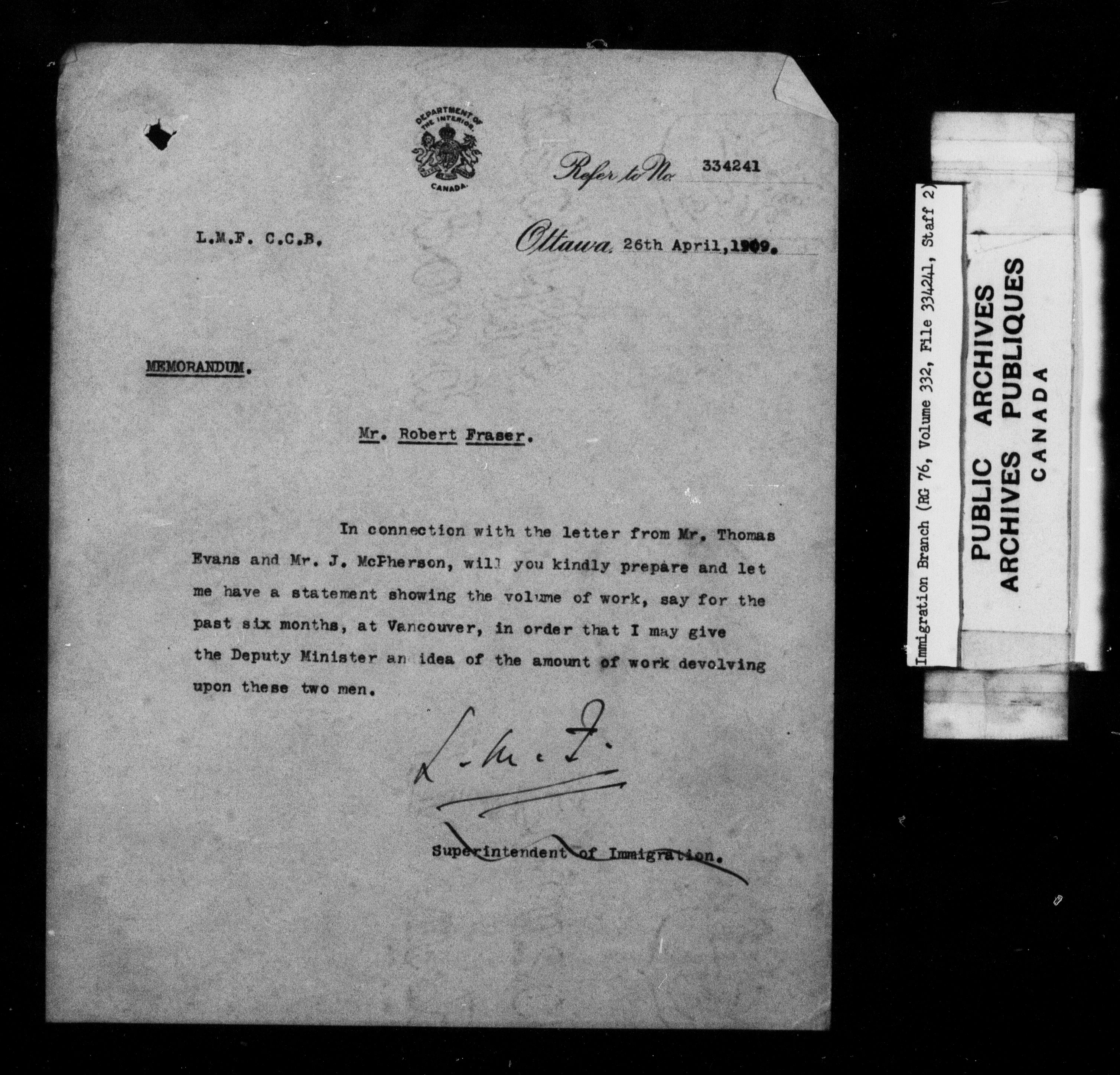 Subject, policy and case files in the First Central Registry series of the Immigration Program, 1892-1950 - 10244