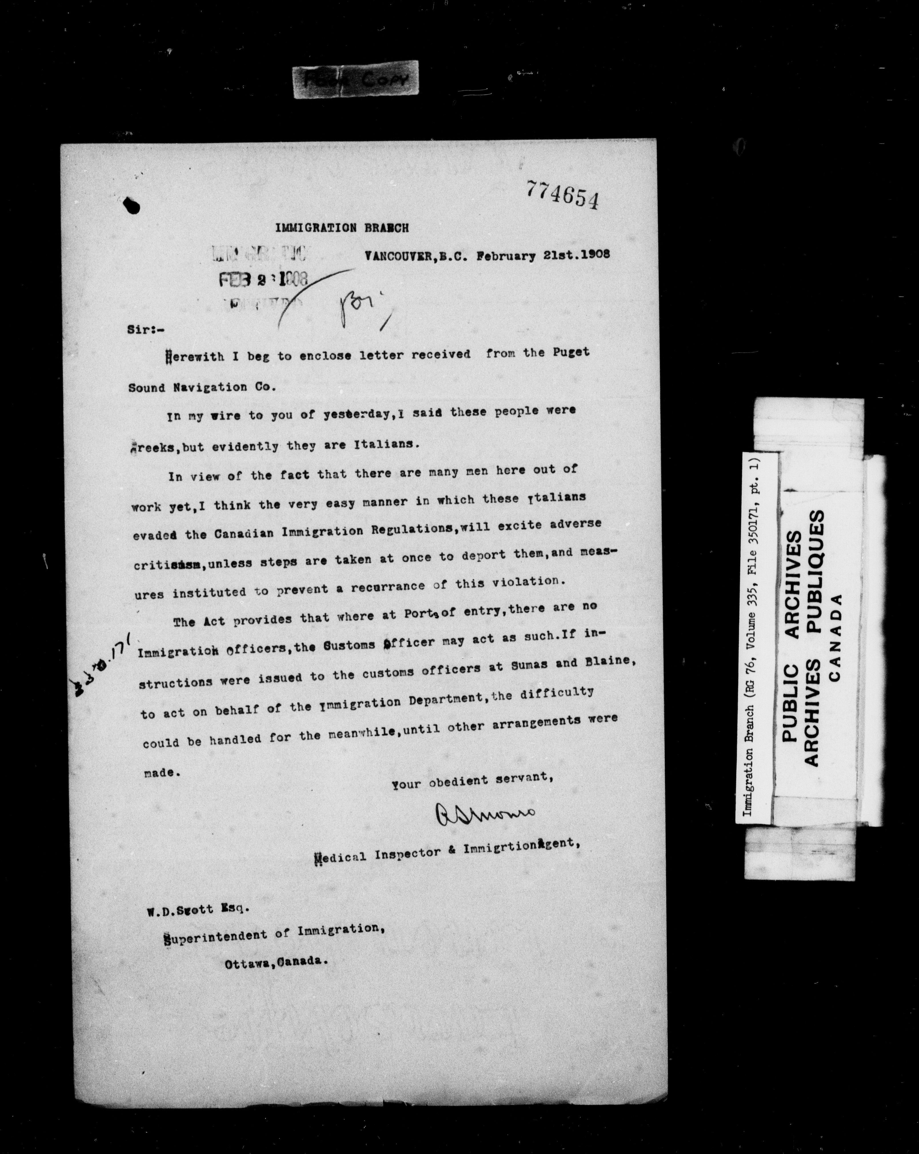 Subject, policy and case files in the First Central Registry series of the Immigration Program, 1892-1950 - 10245