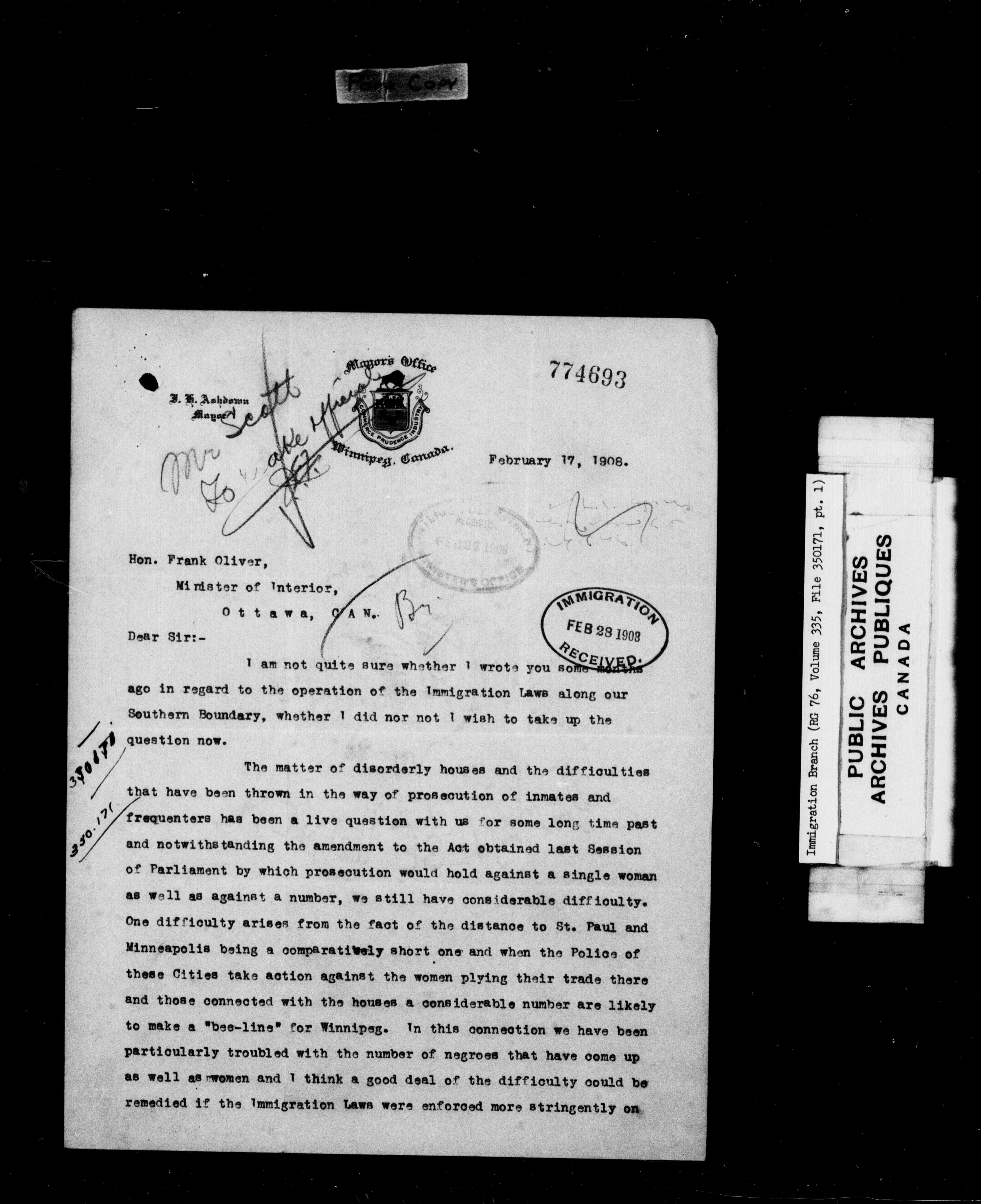 Subject, policy and case files in the First Central Registry series of the Immigration Program, 1892-1950 - 10245