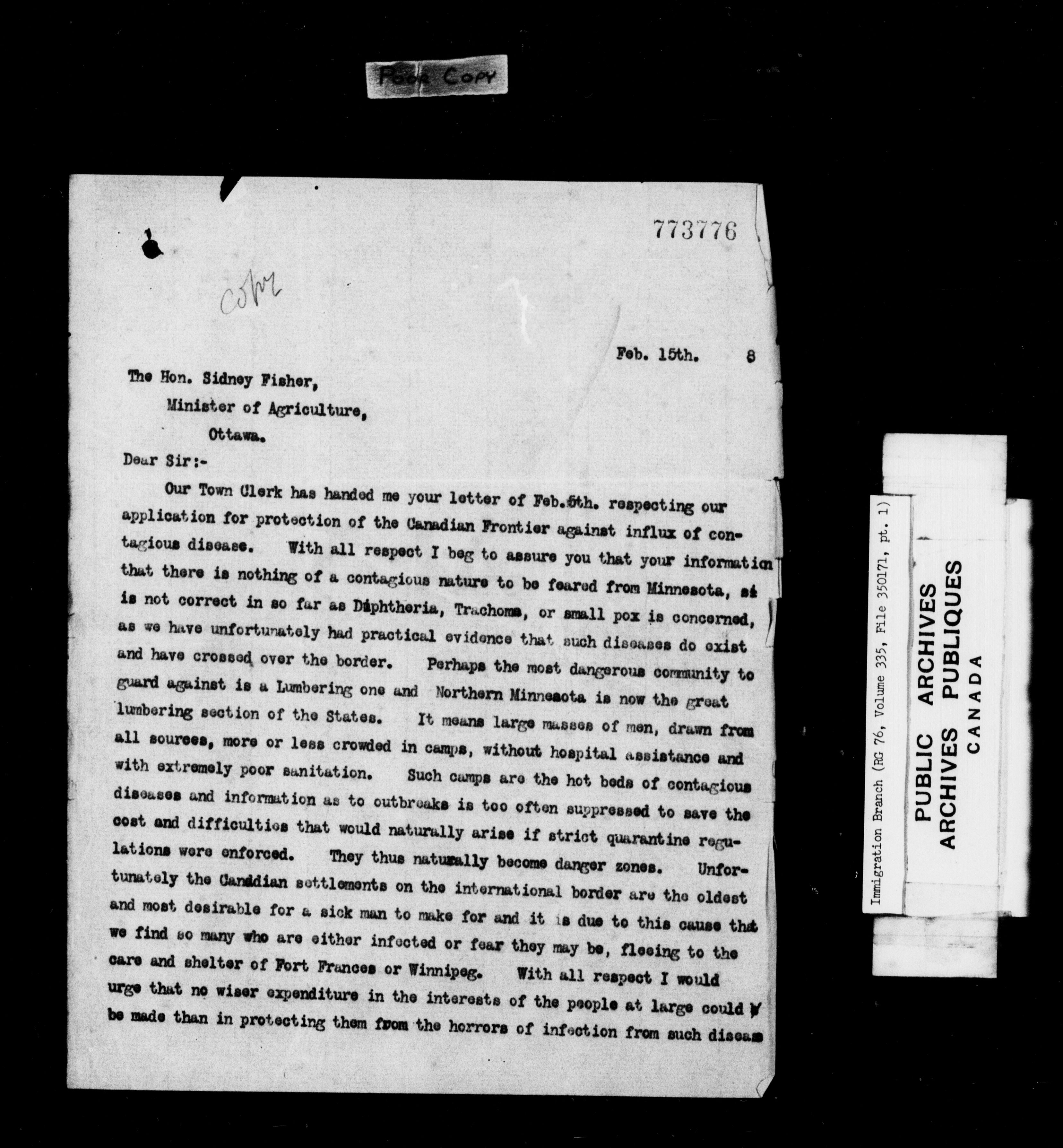 Subject, policy and case files in the First Central Registry series of the Immigration Program, 1892-1950 - 10245