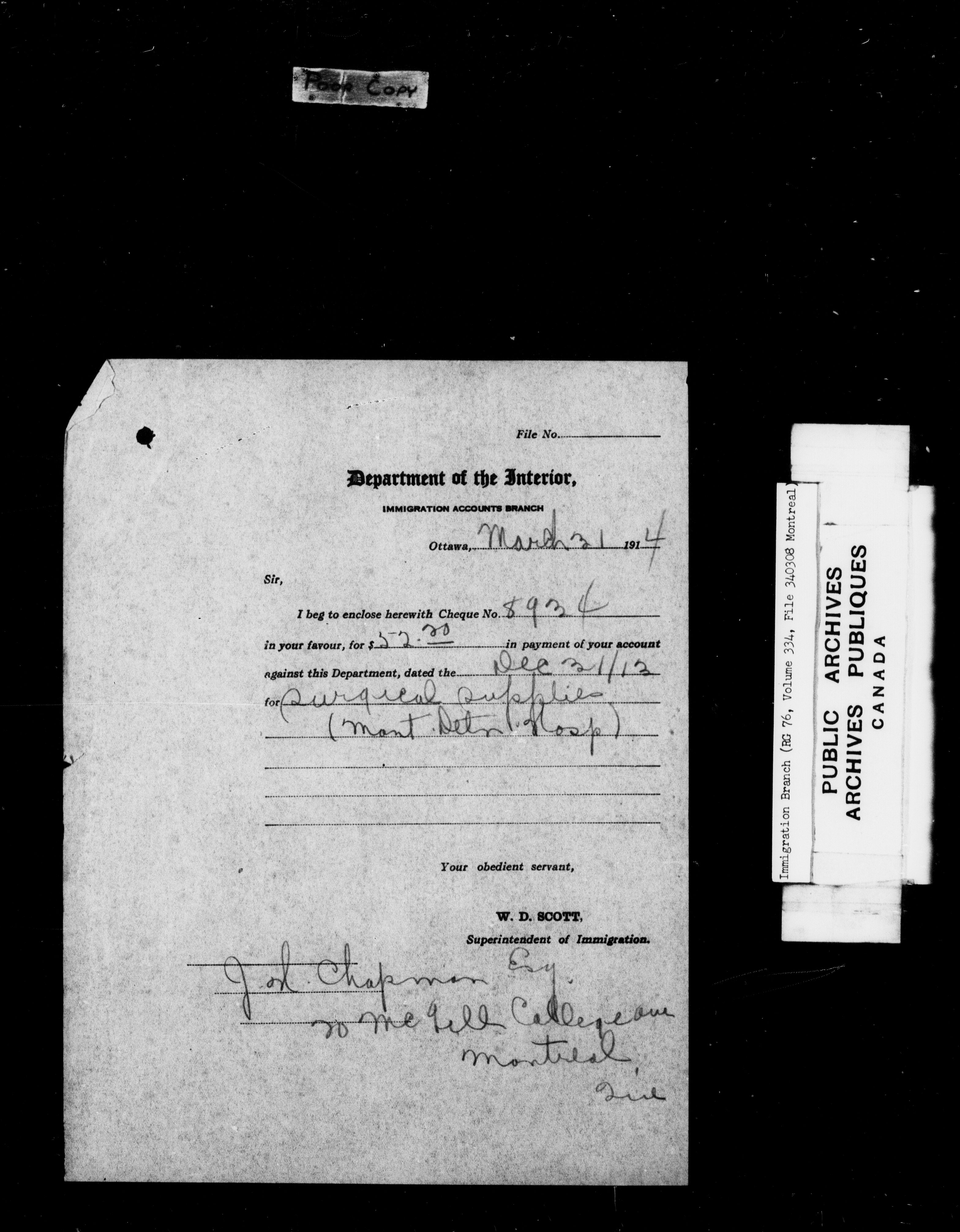 Subject, policy and case files in the First Central Registry series of the Immigration Program, 1892-1950 - 10245