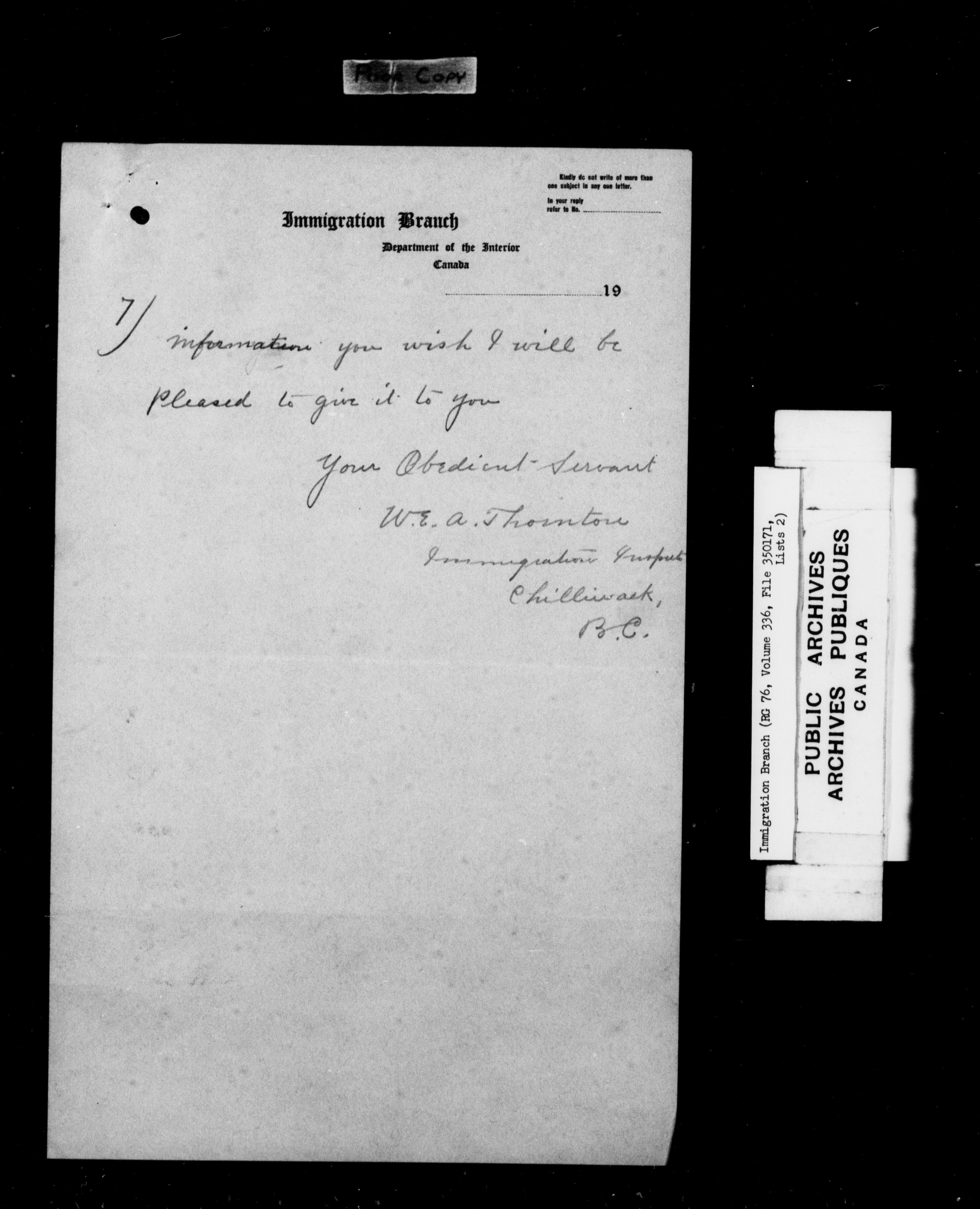 Subject, policy and case files in the First Central Registry series of the Immigration Program, 1892-1950 - 10247