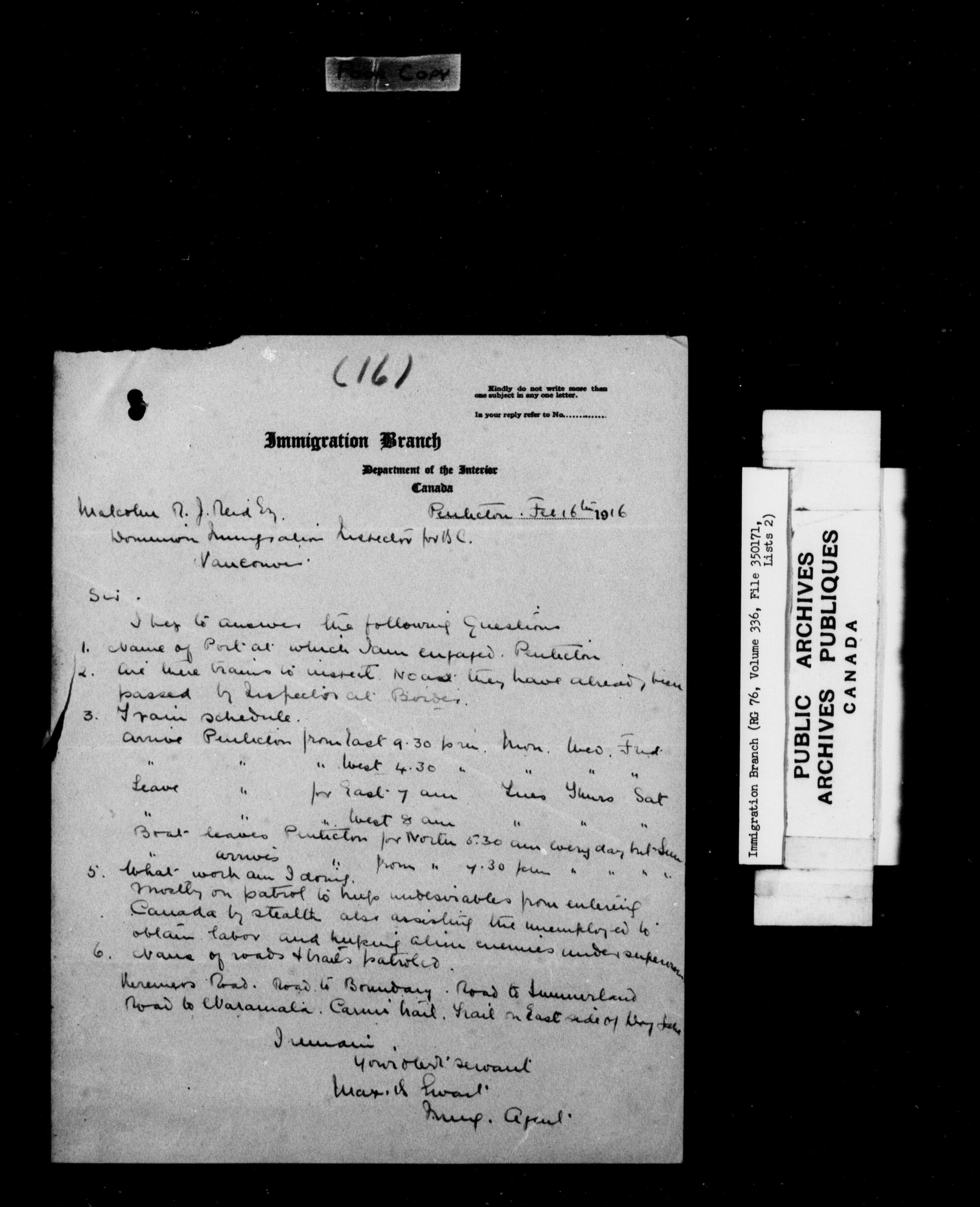 Subject, policy and case files in the First Central Registry series of the Immigration Program, 1892-1950 - 10247
