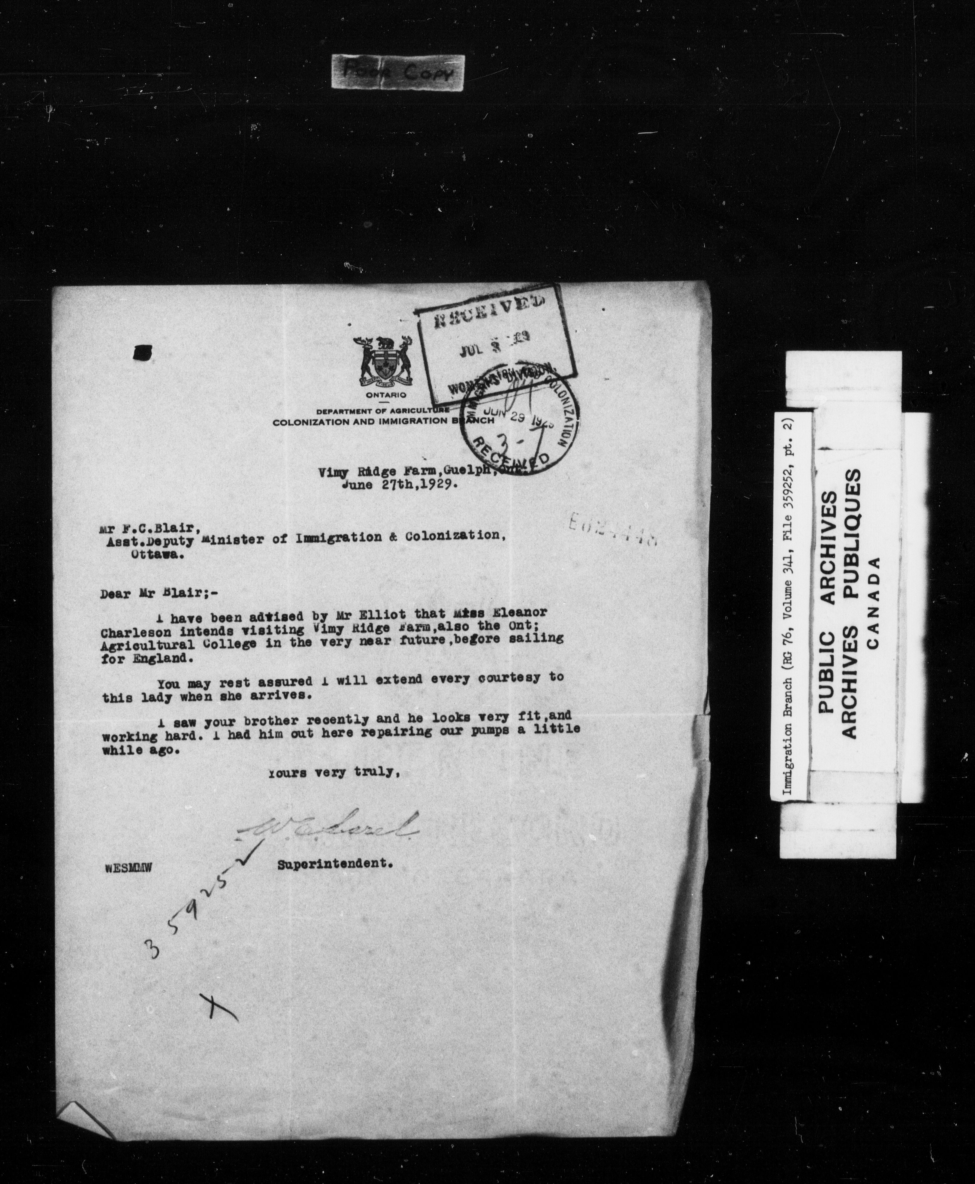 Subject, policy and case files in the First Central Registry series of the Immigration Program, 1892-1950 - 10250