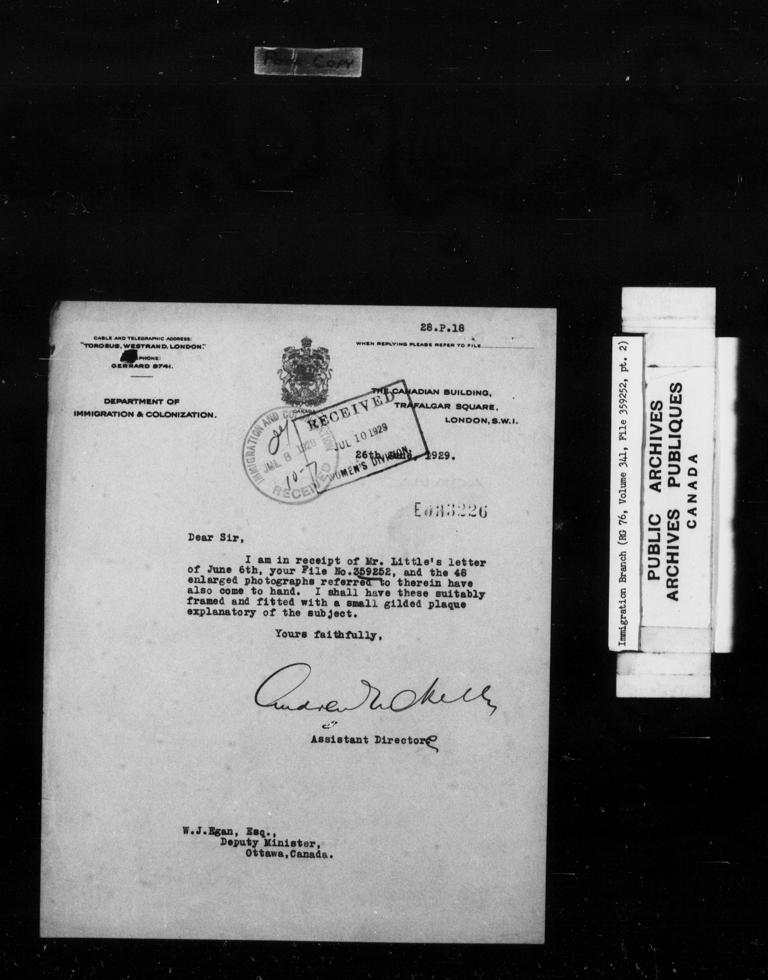 Subject, policy and case files in the First Central Registry series of the Immigration Program, 1892-1950 - 10250