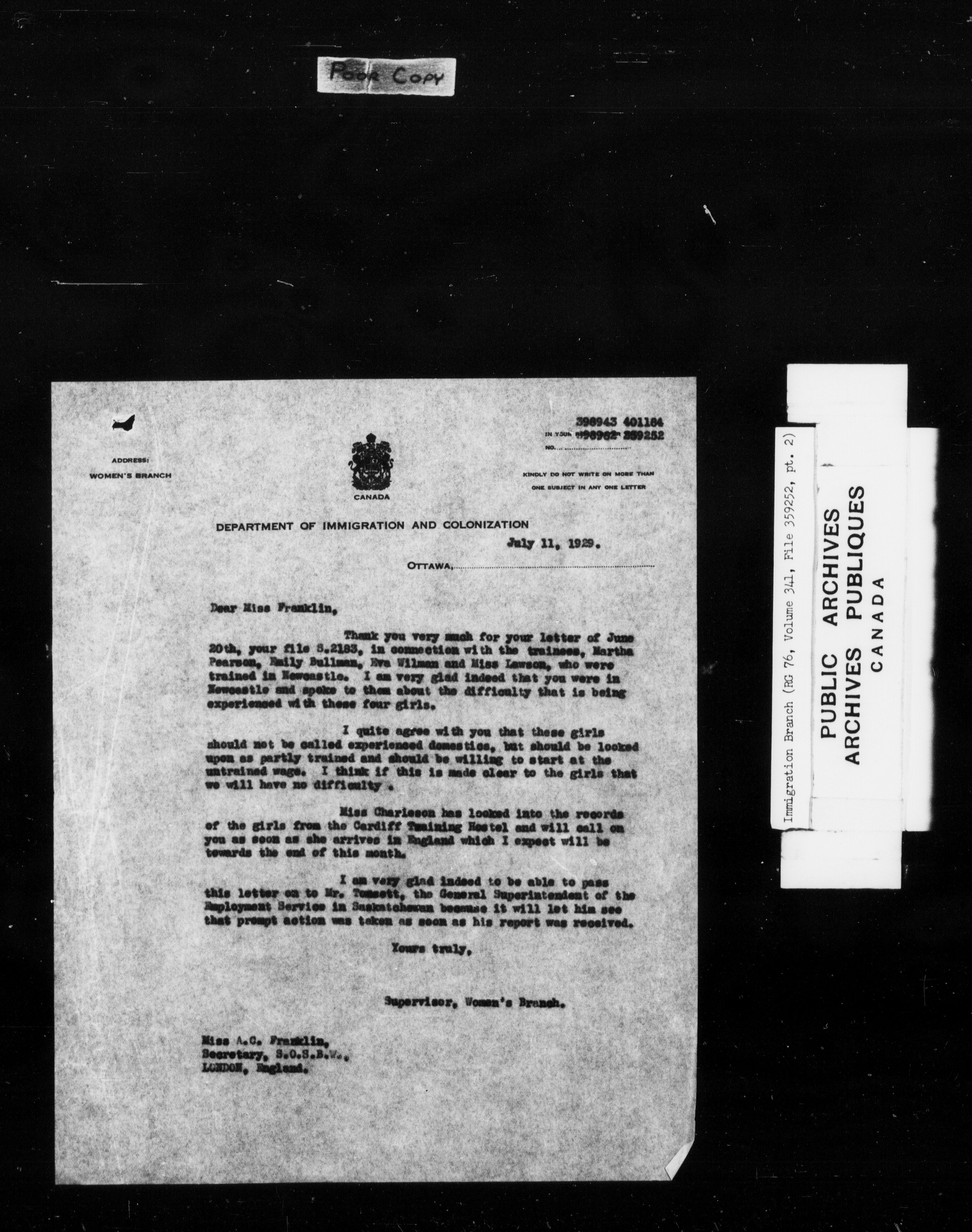 Subject, policy and case files in the First Central Registry series of the Immigration Program, 1892-1950 - 10250