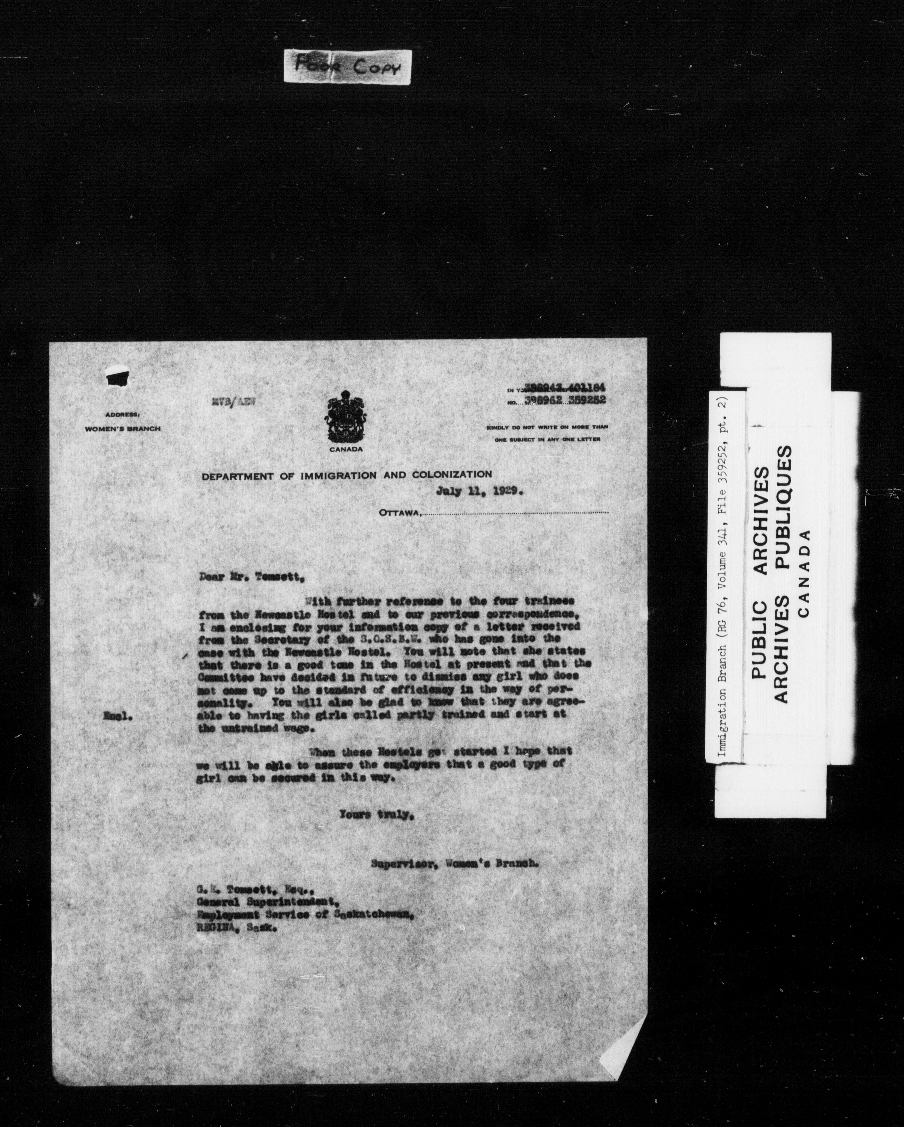 Subject, policy and case files in the First Central Registry series of the Immigration Program, 1892-1950 - 10250