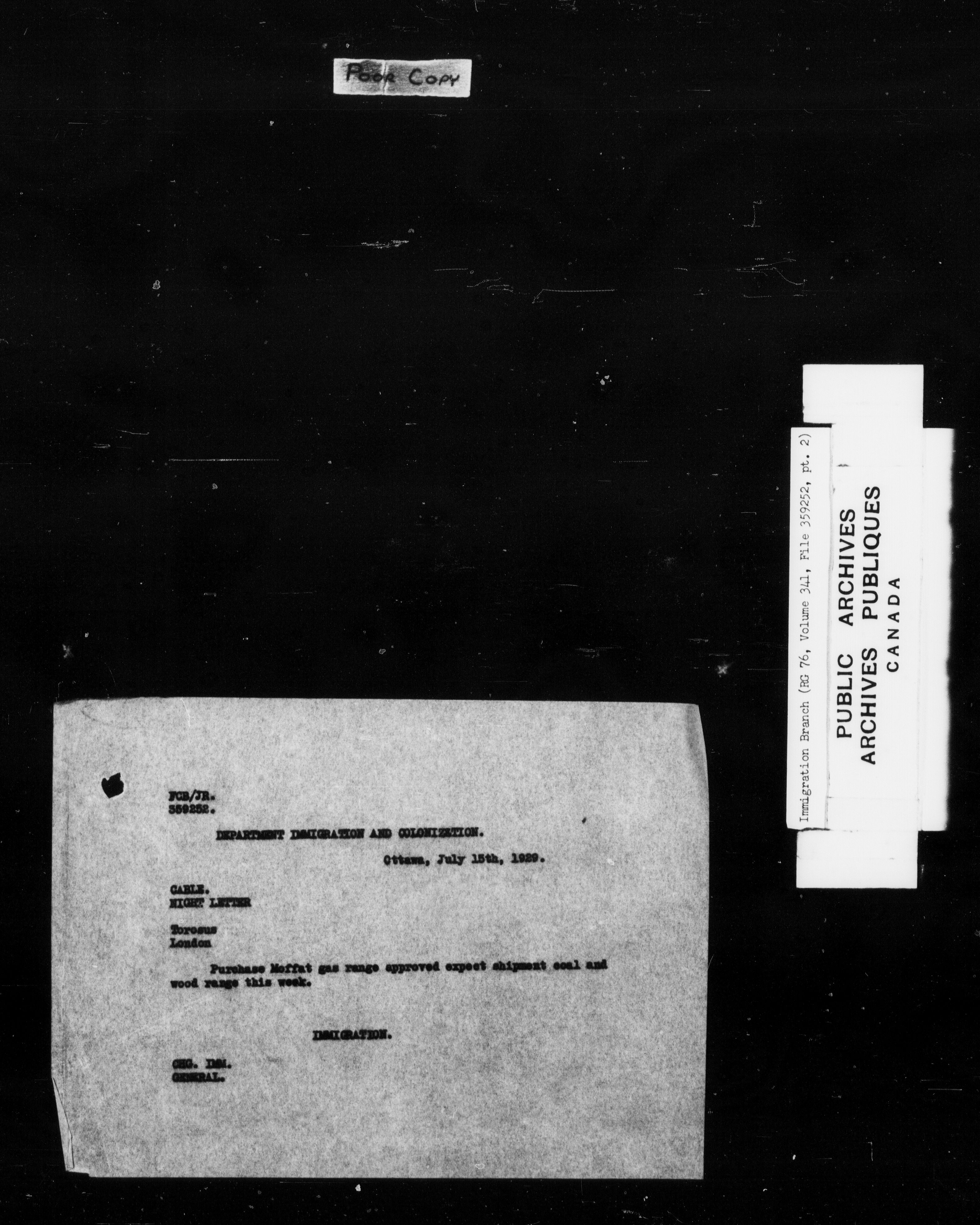 Subject, policy and case files in the First Central Registry series of the Immigration Program, 1892-1950 - 10250