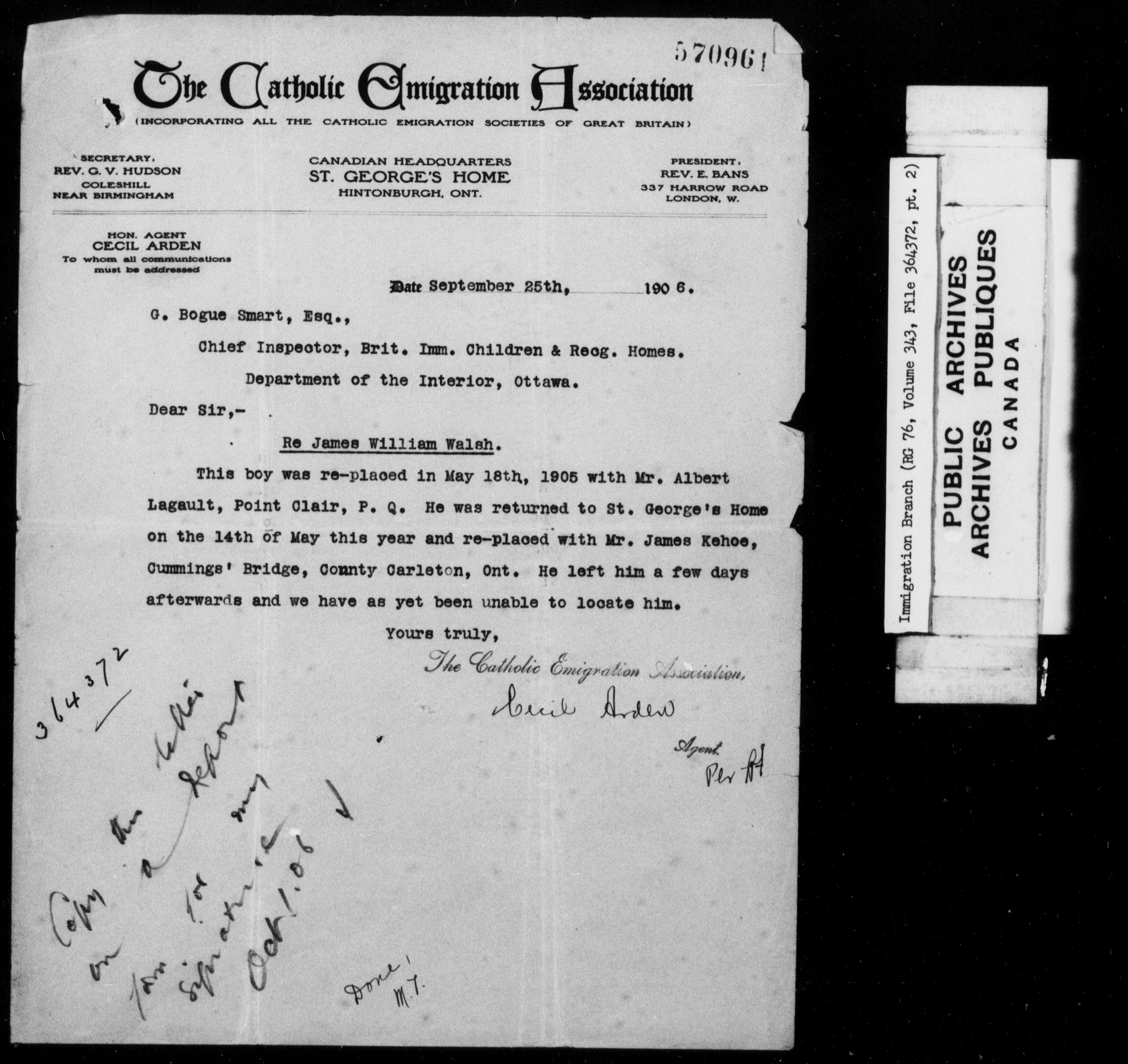 Subject, policy and case files in the First Central Registry series of the Immigration Program, 1892-1950 - 10251